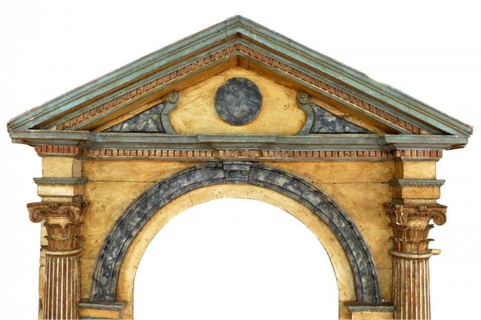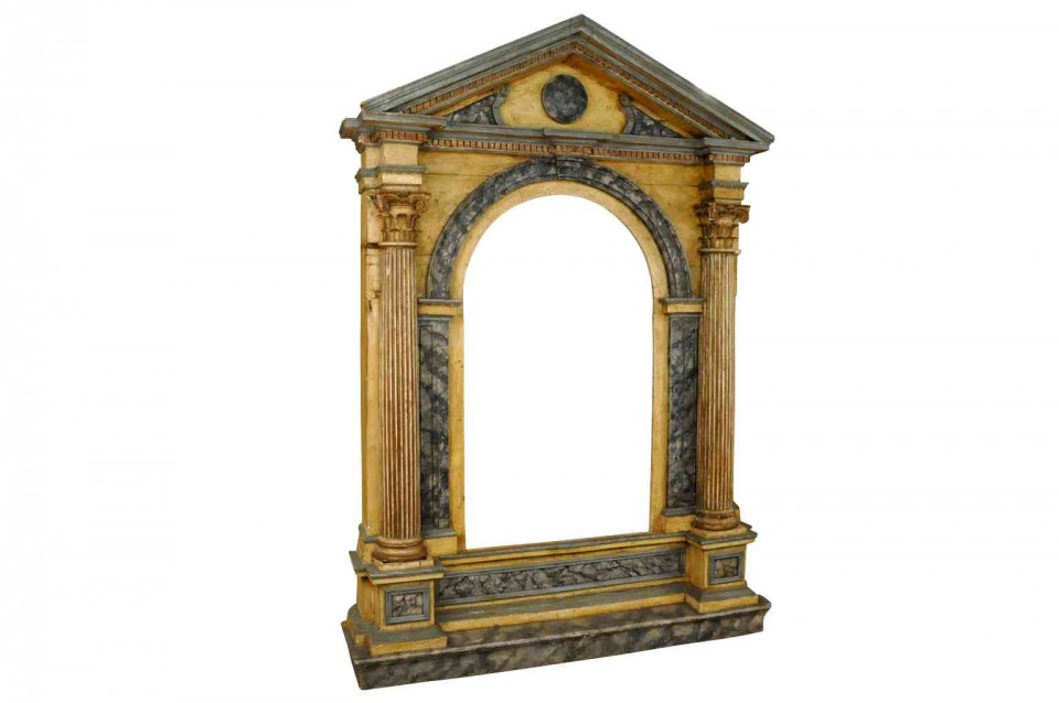 A monumental and stunning 18th century architectural niche facade - altar frame - from Northern Italy. Beautifully constructed from wood, expertly polychromed finish with faux marble detail.