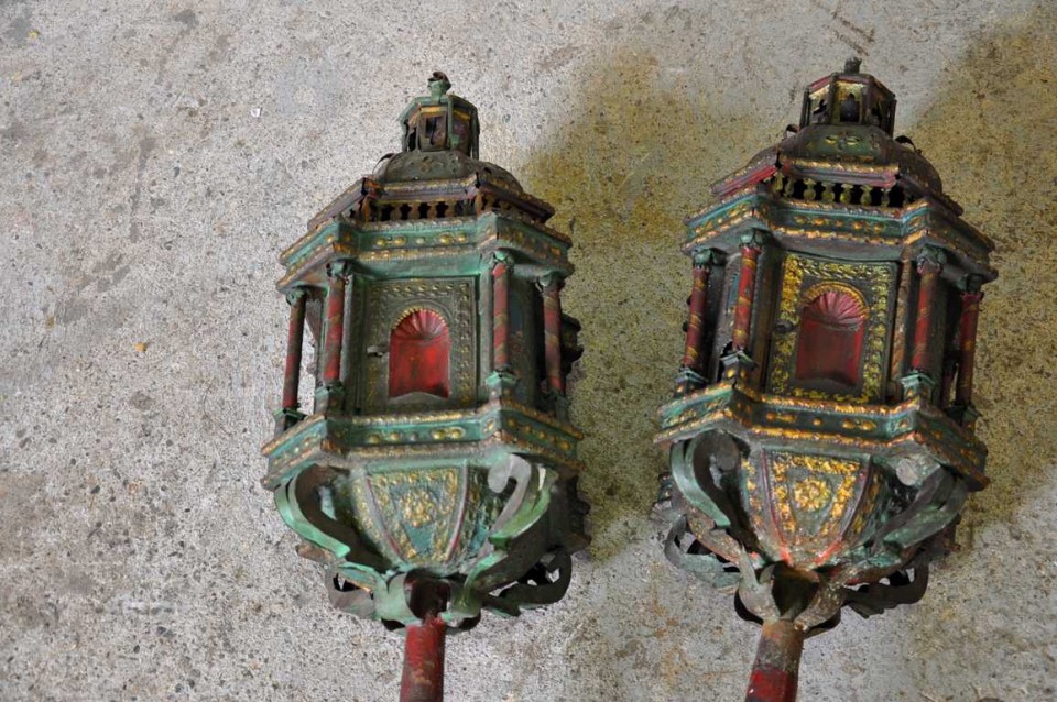Pair of Italian 18th century “lanternes” Made of painted (polychromed) metal Circa 1800.