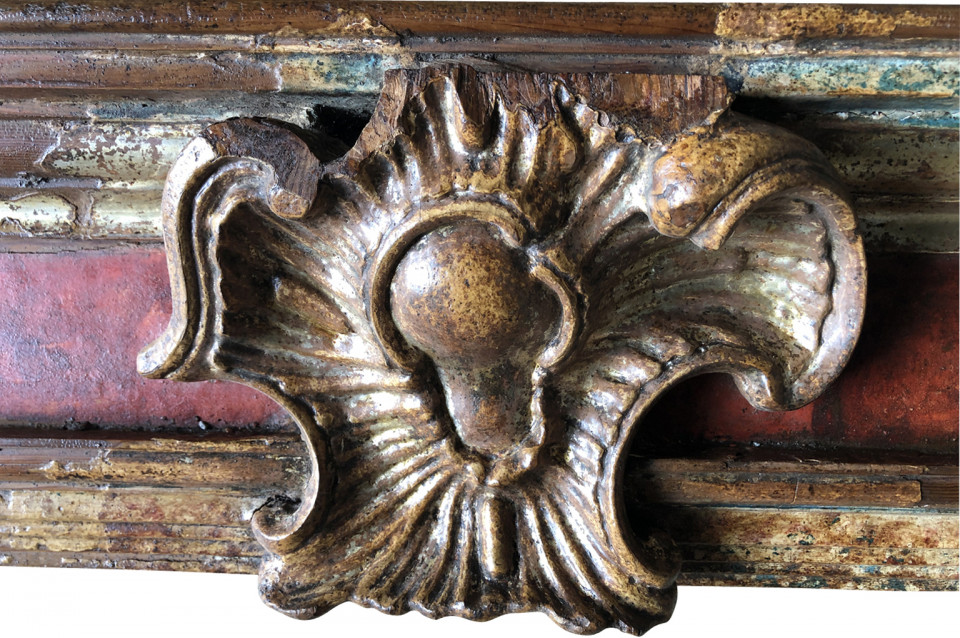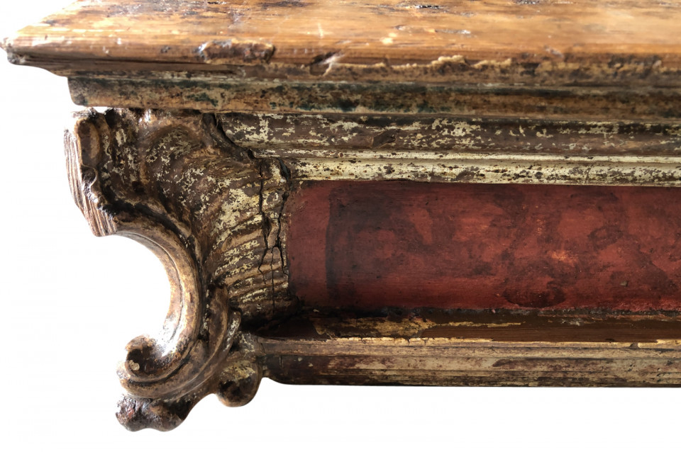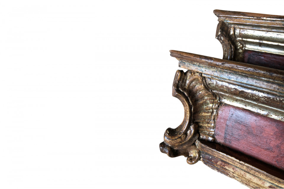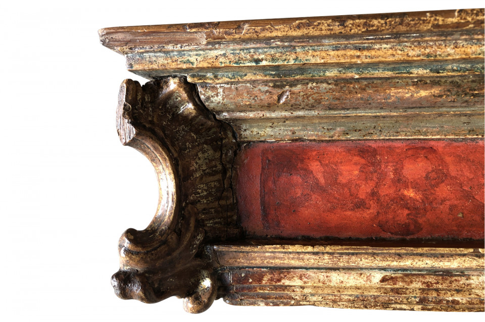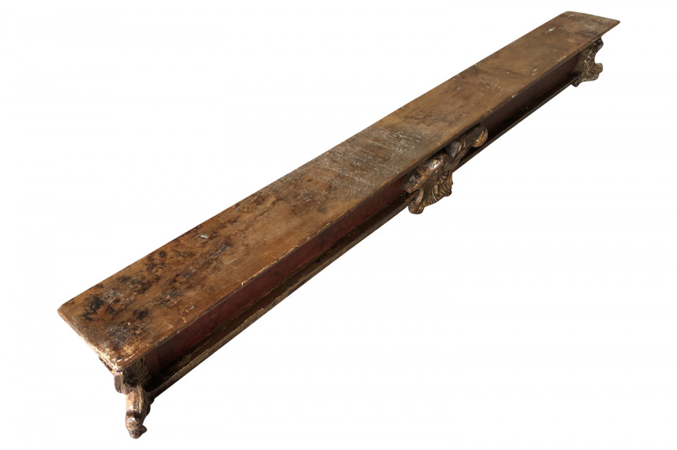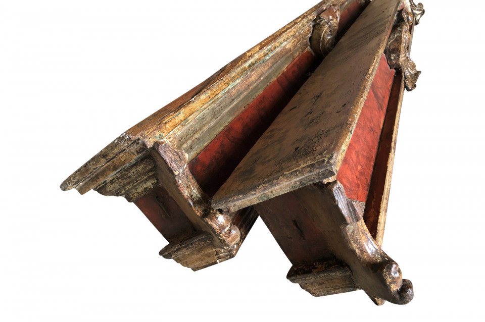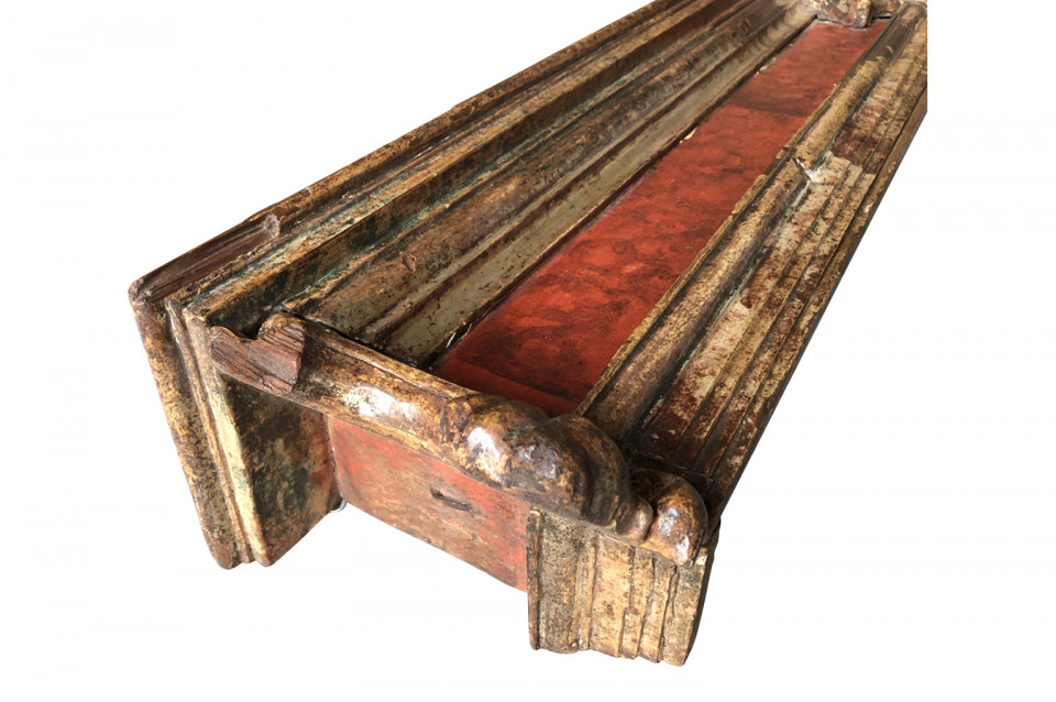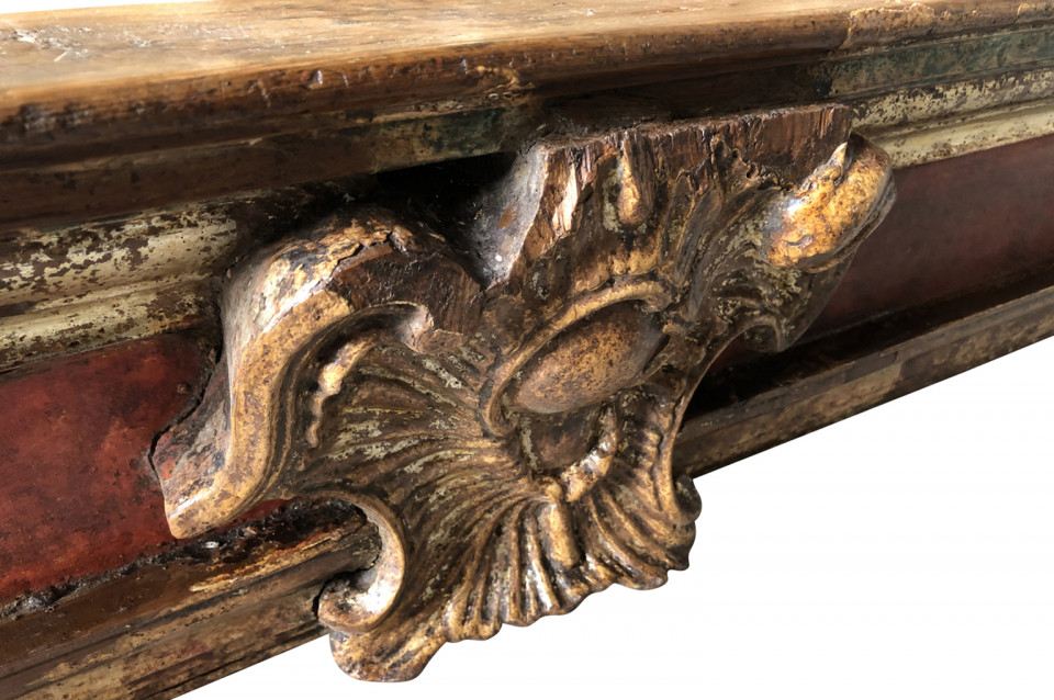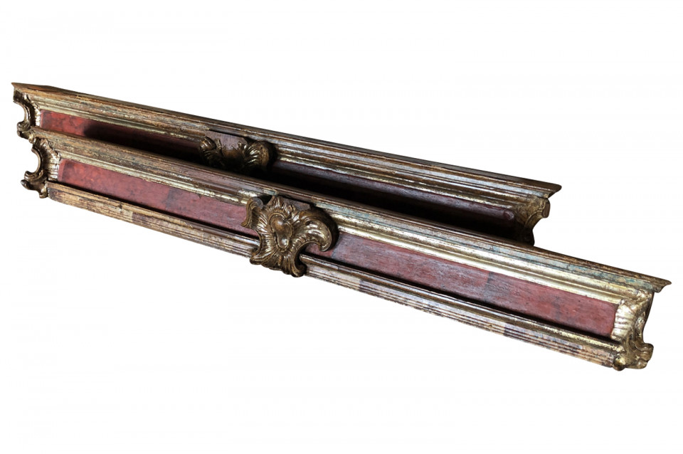 A stunning pair of mid-19th century cornices - window valances from Barcelona handsomely crafted from gilt and polychromed wood.