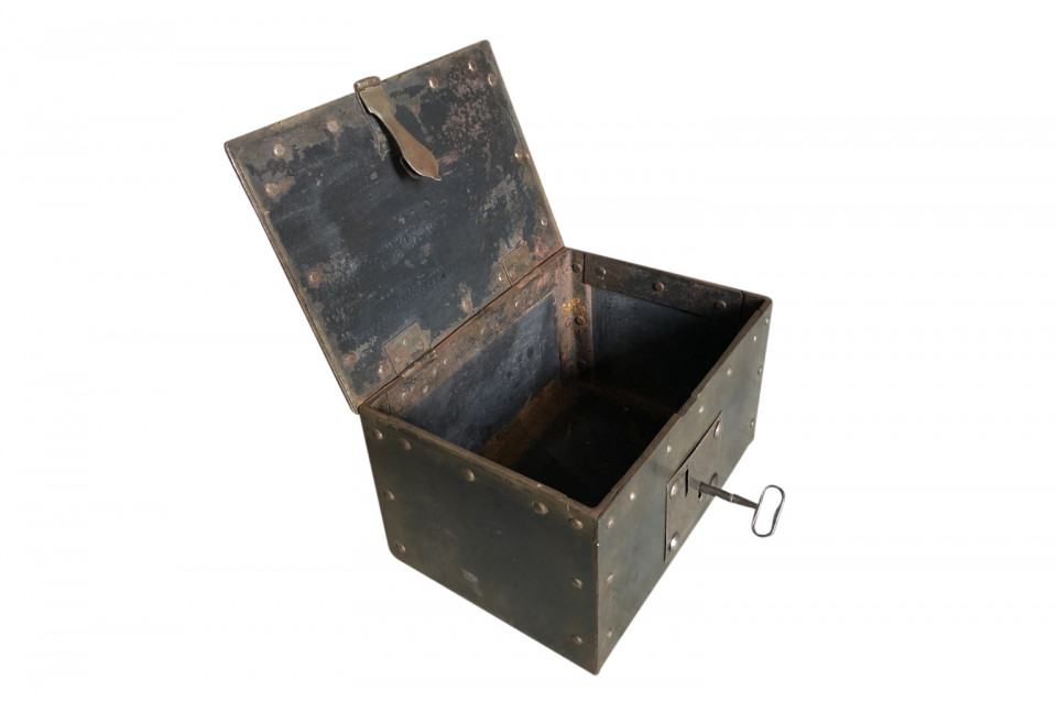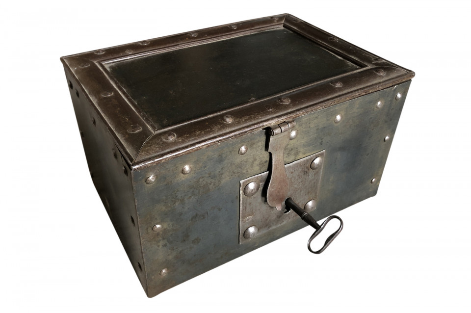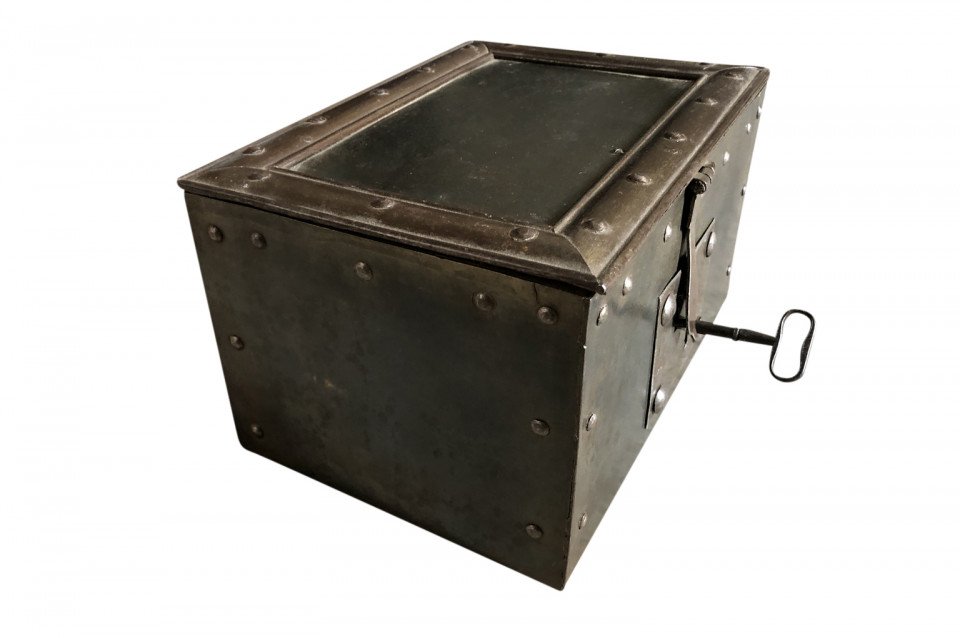 A very handsome 19th century strong box from Northern Italy. A wonderful accent piece for a desk, bookcase or dresser.