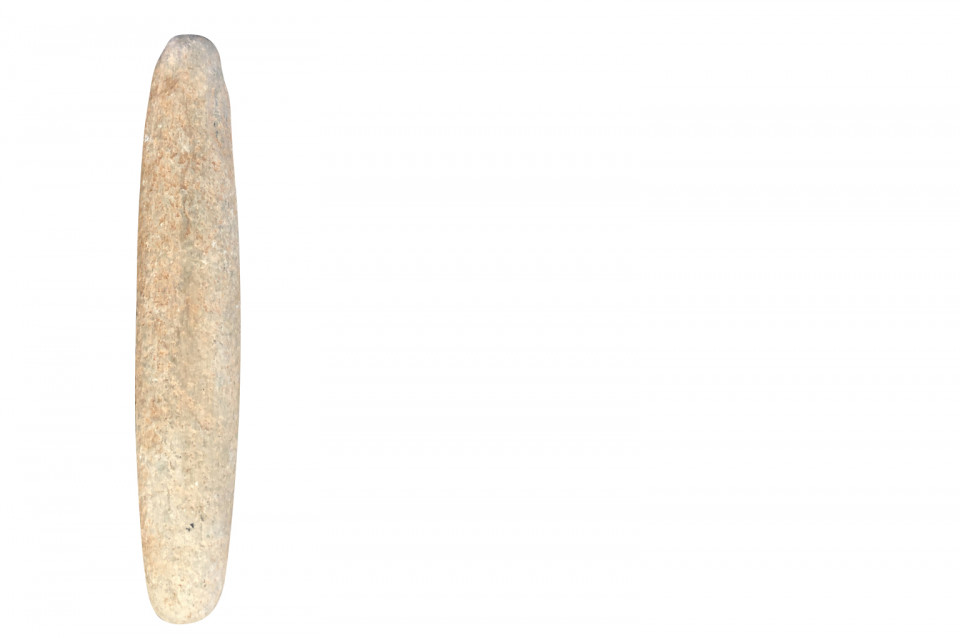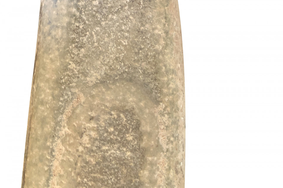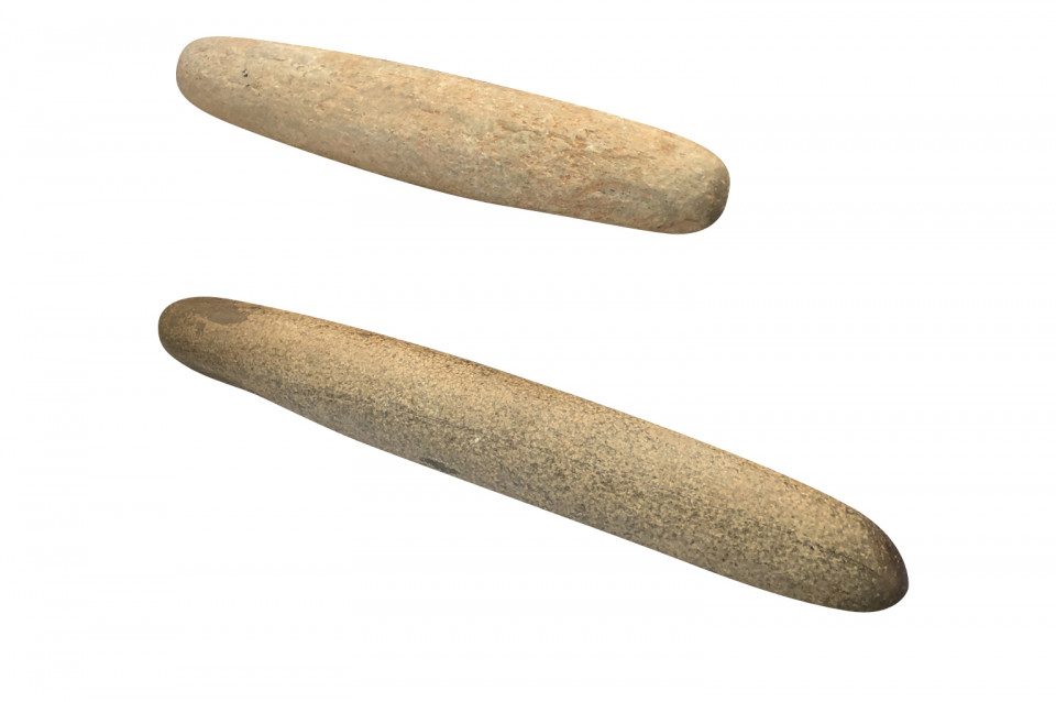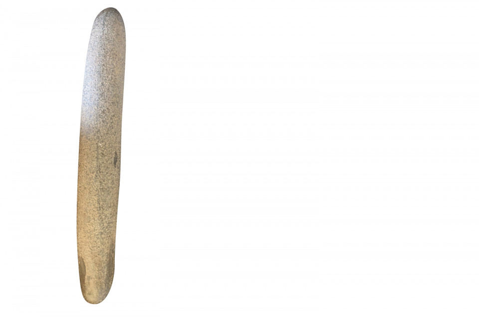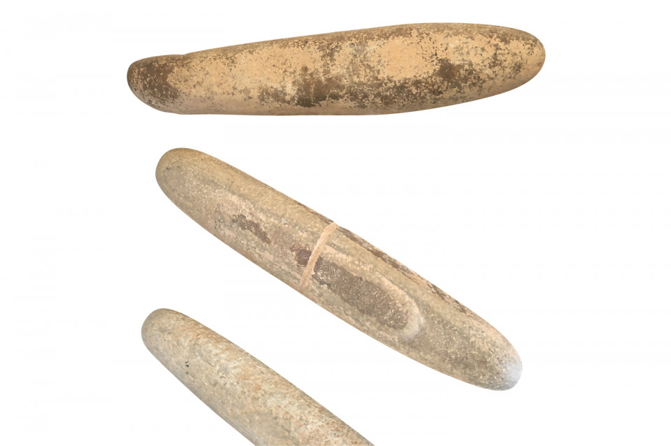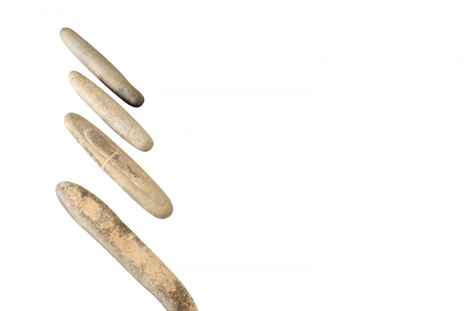 An amazing set of 4 prehistoric stone lithophones origining from the Sahara Dessert. “Litho” is Greek for stone and “phone” means sound. Lithophones are musical instruments consisting of a purposely-selected rock that is tapped or rubbed with friction to produce musical notes. Portable and stationary lithophones have been utilized in ancient and modern cultures around the world, including Europe, the Far East, Africa, the South Seas, and South America. The pieces range from 15 7/8" H X 3" W X 2 5/8" D to 20 7/8" H X 3" W X 2 7/8" D. A tremedous collection of intriguing objects.