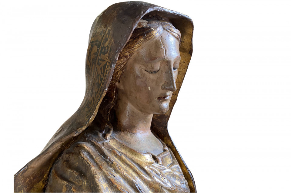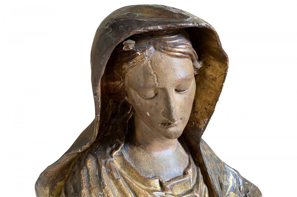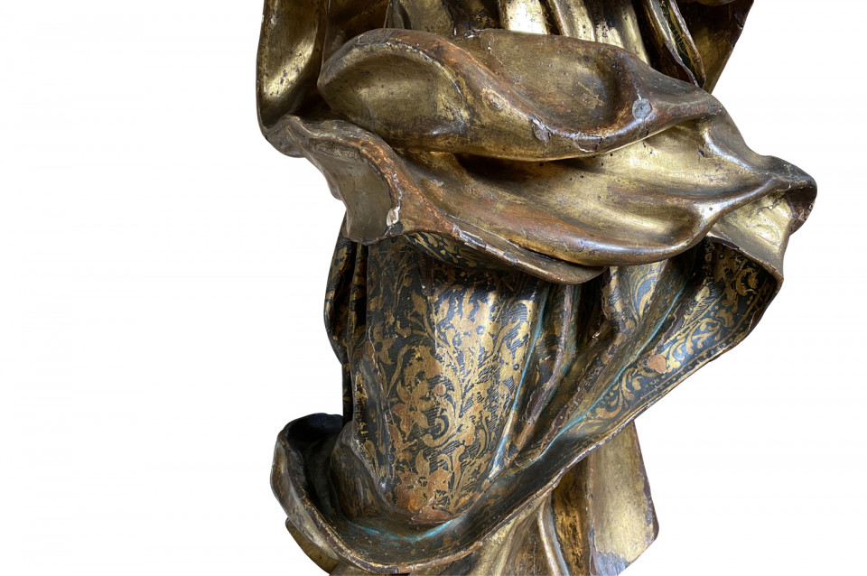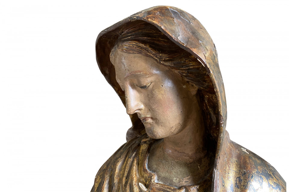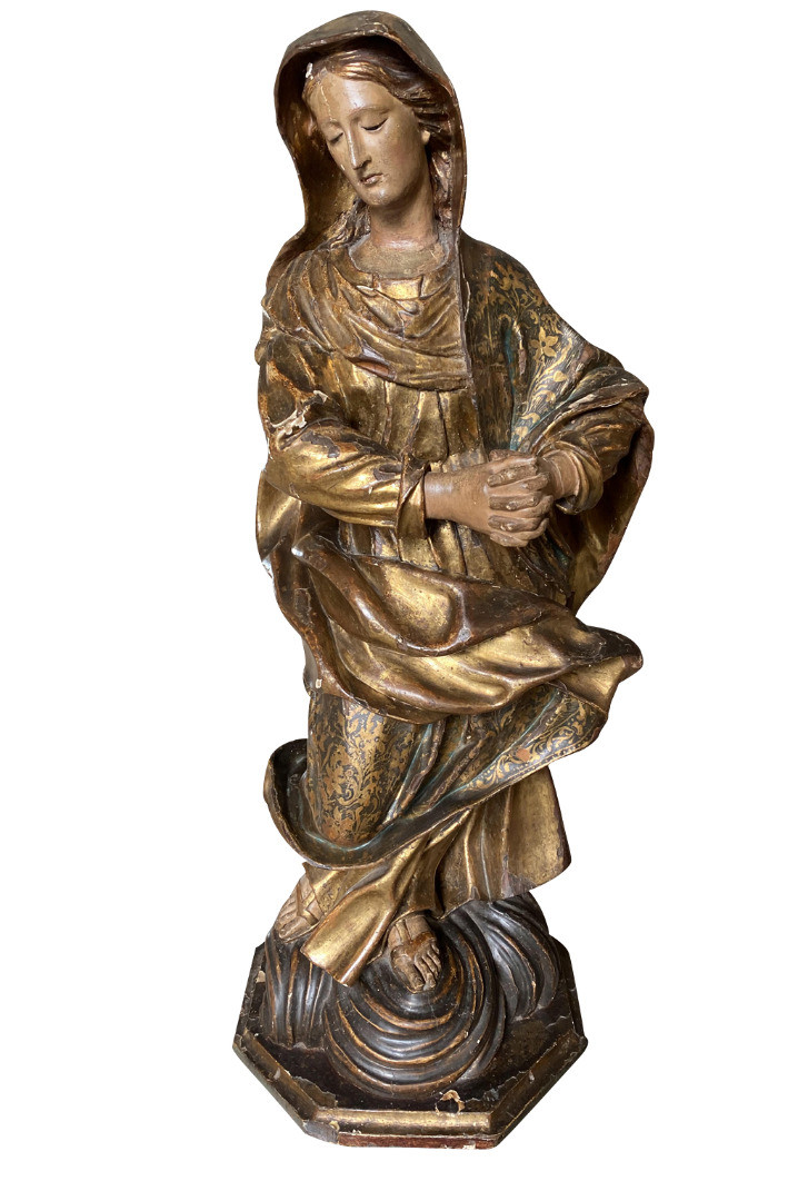 A breathtaking 17th century Statue of the Madonna from Venice. Beautifully crafted from polychromed and gilt wood. Exquisite features.