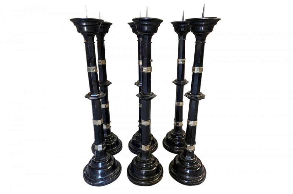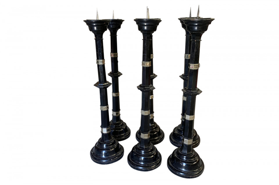 Set Of 6 mid-19th Century Lacquered Pique Cierges