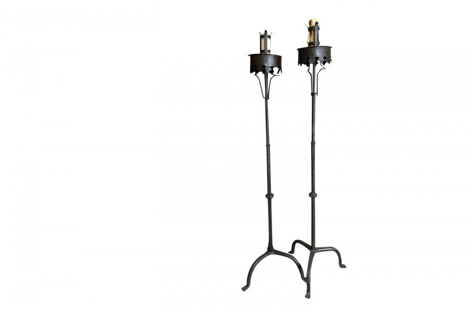 An outstanding and exceptional pair of 15th century Pique Cierge from the Veneto region of Italy. Expertly crafted from hand forged iron. Understated and elegant with fabulous patina.