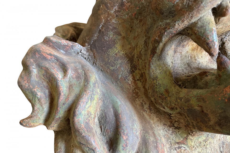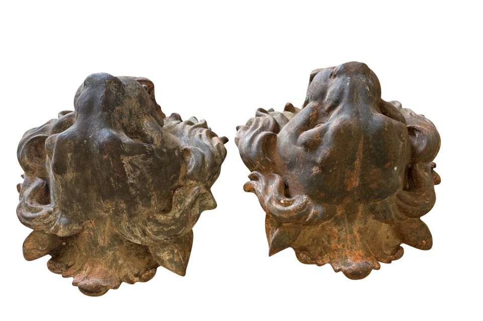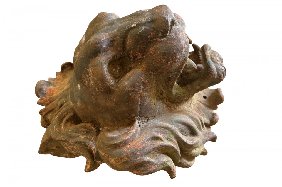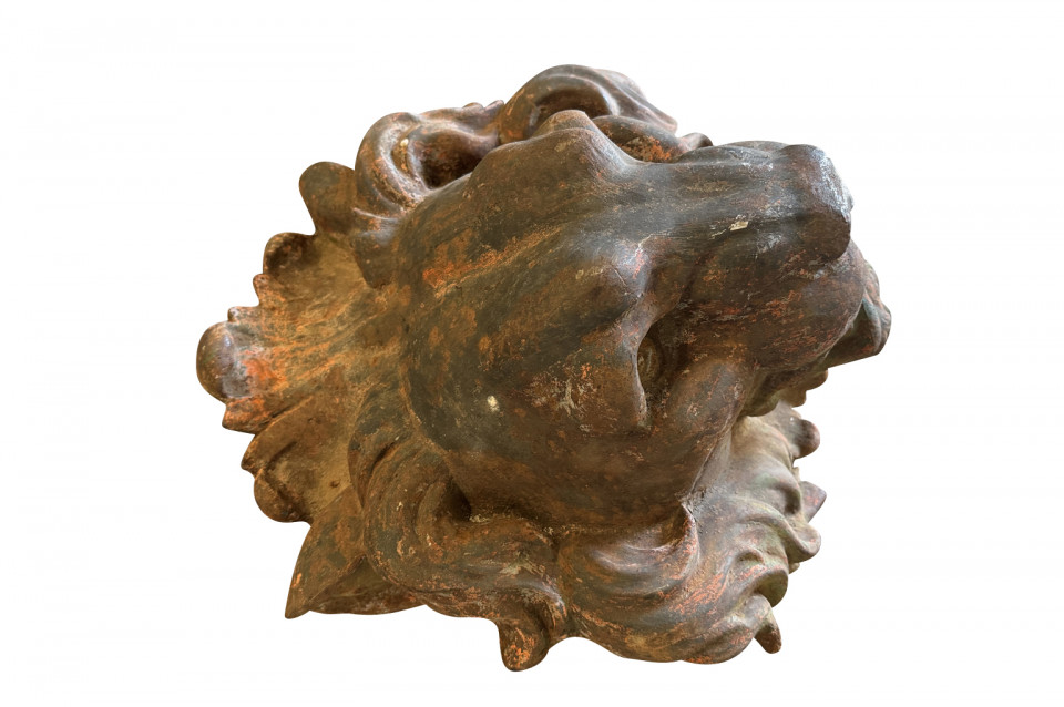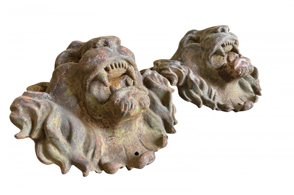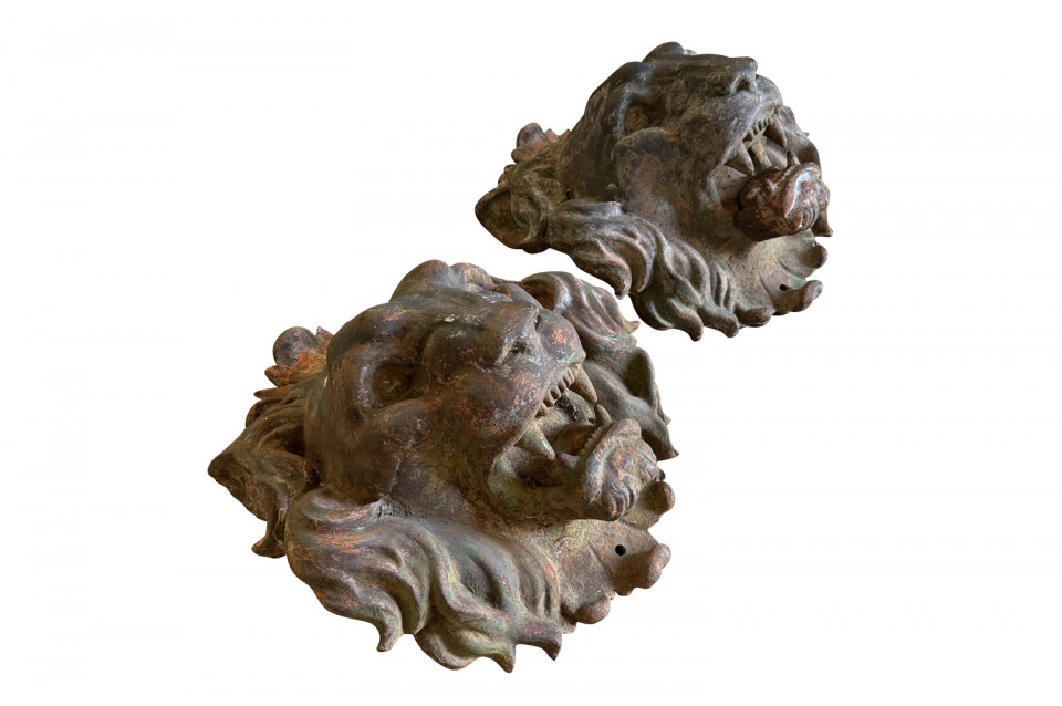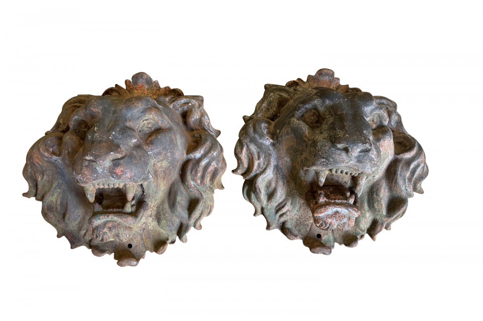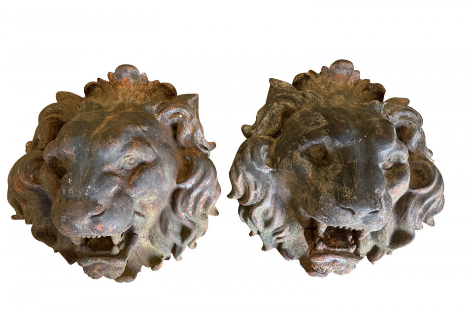Pair Of Grand Scale French Iron Lions' Heads