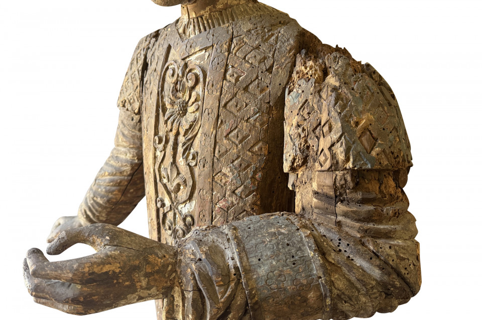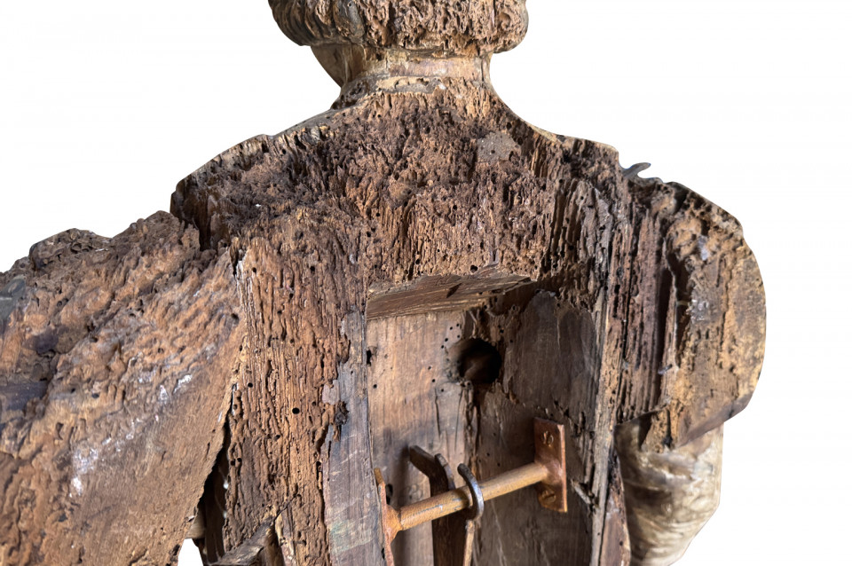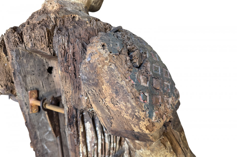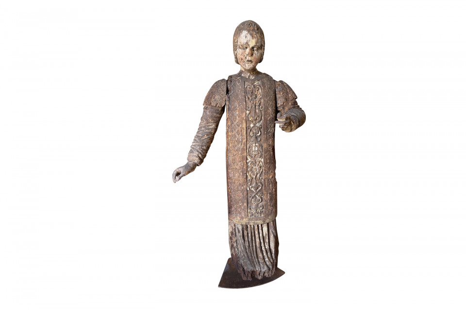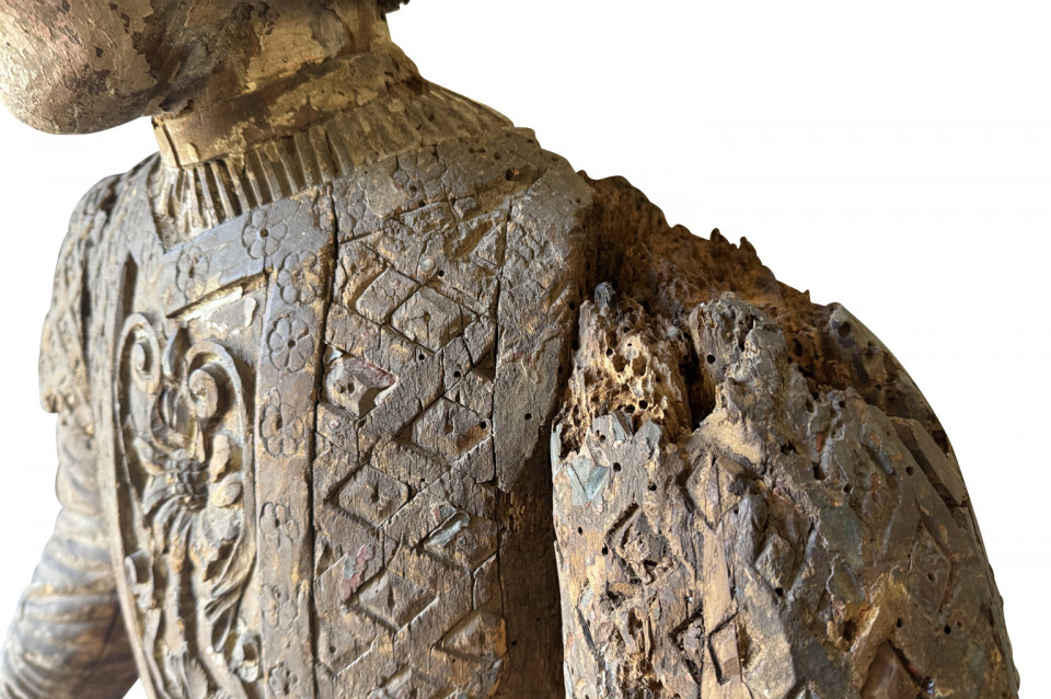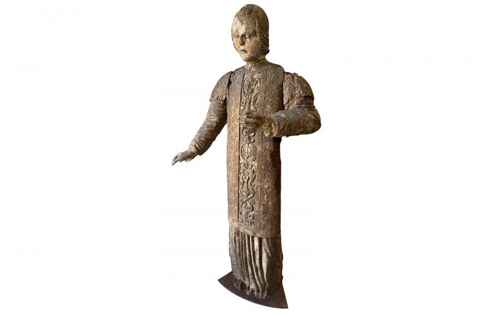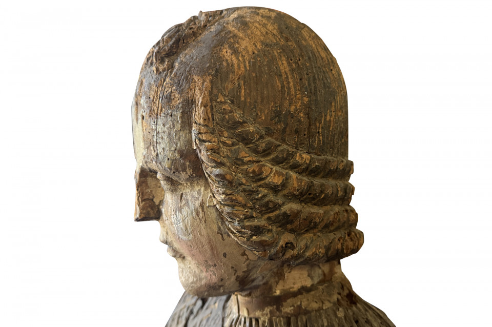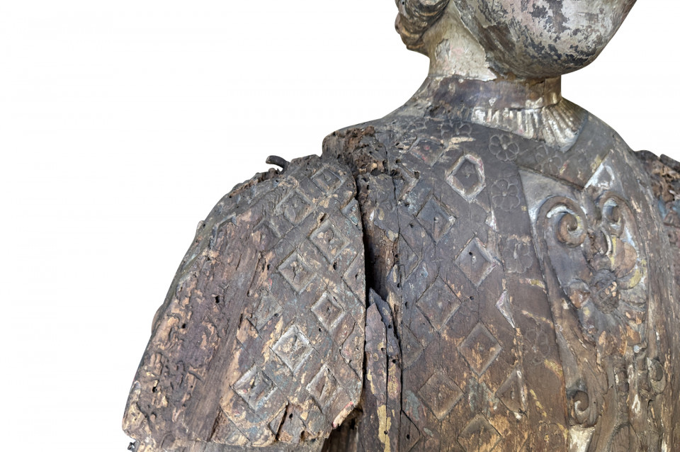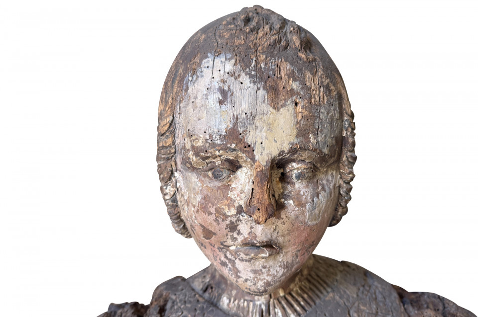 An extraordinary and exceptional 17th century Statue of Saint Francis of Xavier (1506 - 1552). Magnificently carved from wood with traces of the original polychromed finish. The statue is of a young Francis at the dawn of his priesthood. Saint Francis was an original founding member of the Society of Jesus - The Jesuits.