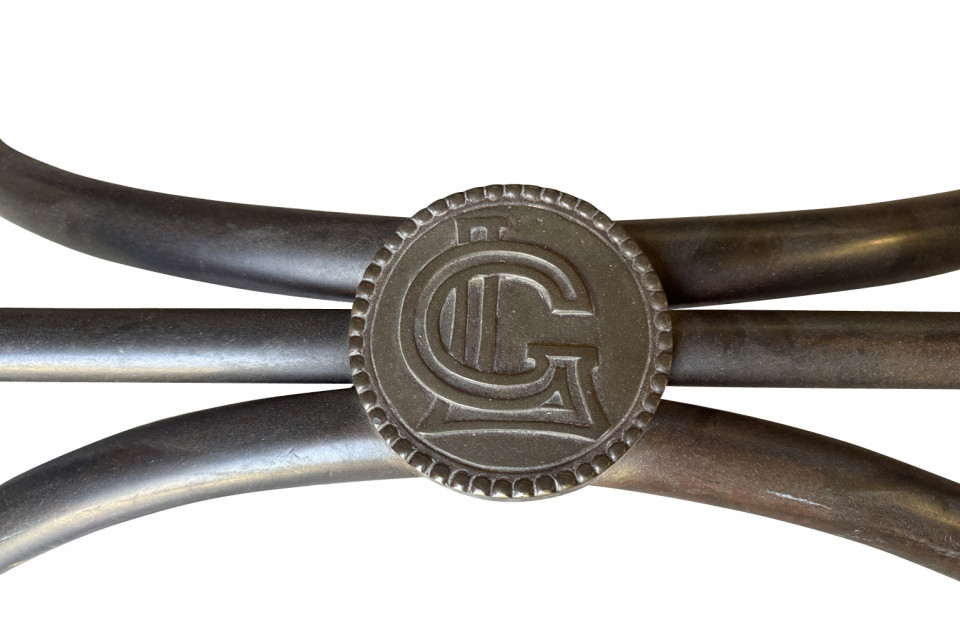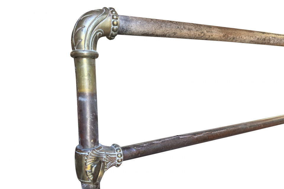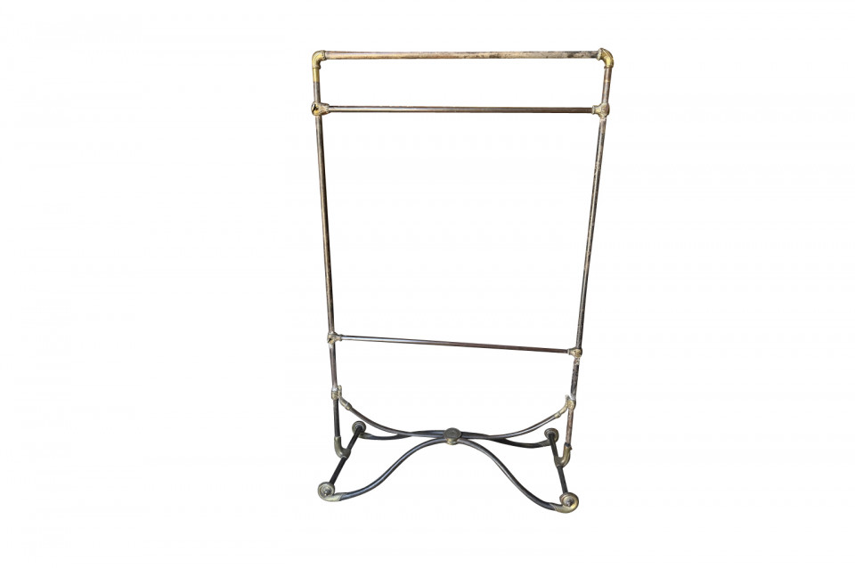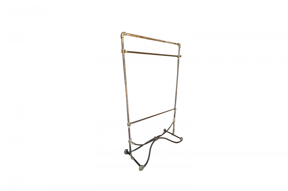 A very beautiful Art Nouveau Portant De Magasin - Clothing Rack originally from Paris' famous Galerie Lafayette. Wonderfully constructed in metal with bronze ornamentation and Galerie Lafayette's initials GL. Perfect for a loft foyer, large master closet, restaurant or as a store display piece.