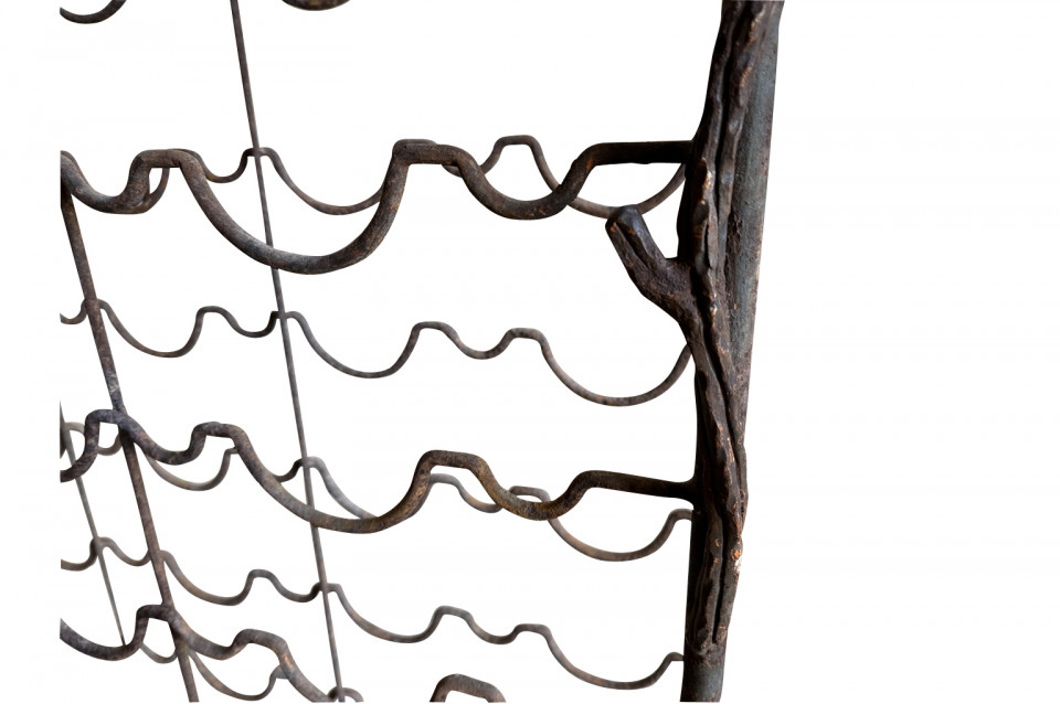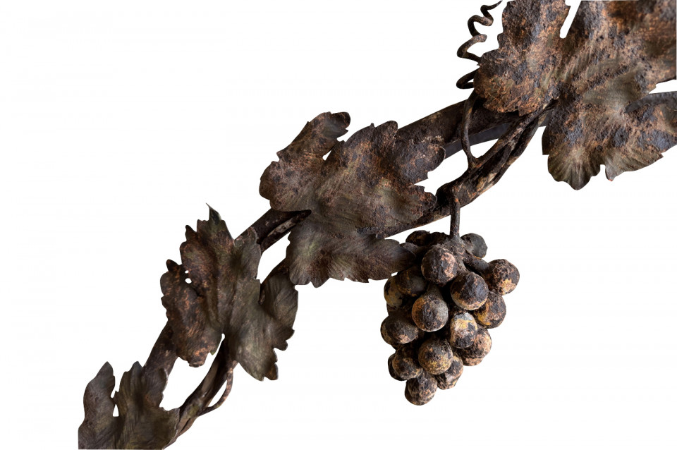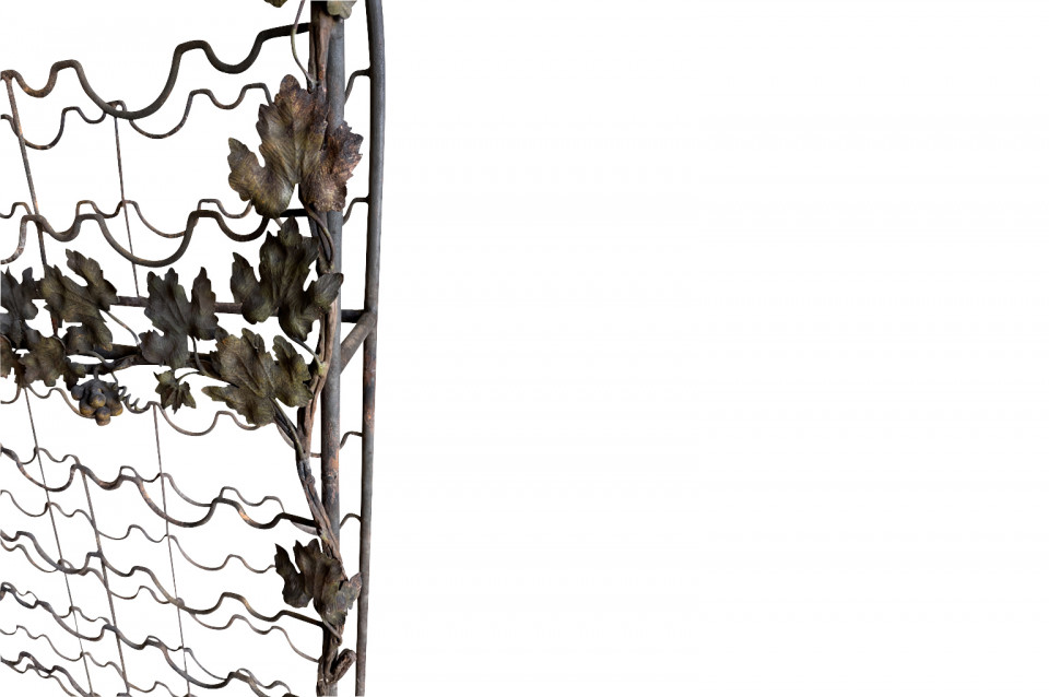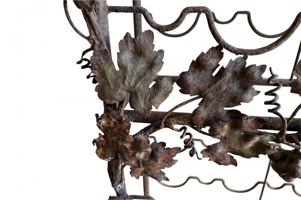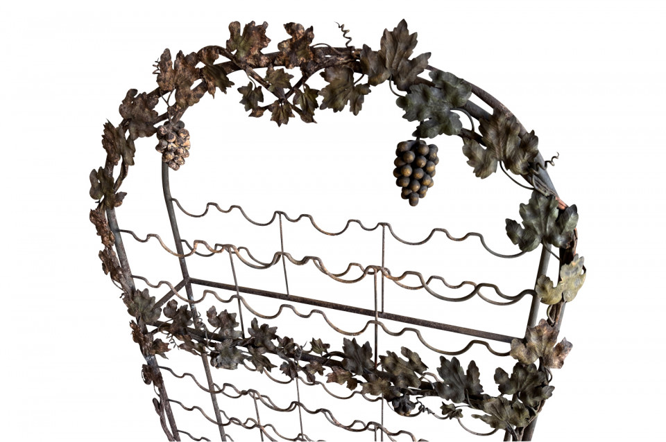 Exceptional late 19th century Wine Cave - Cage from Barcelona, Spain. Expertly created from hand forged and wrought iron. Beautifully decorated with bunched of grapes, leaves and vines. This wine cage once graced a home designed by Antoni Gaudi. An excellent addition to any wine cellar, kitchen or living area.