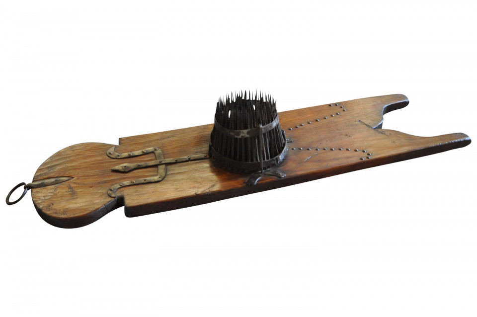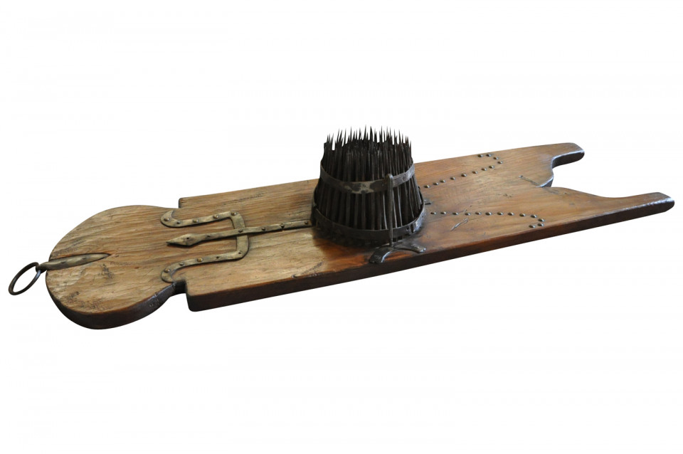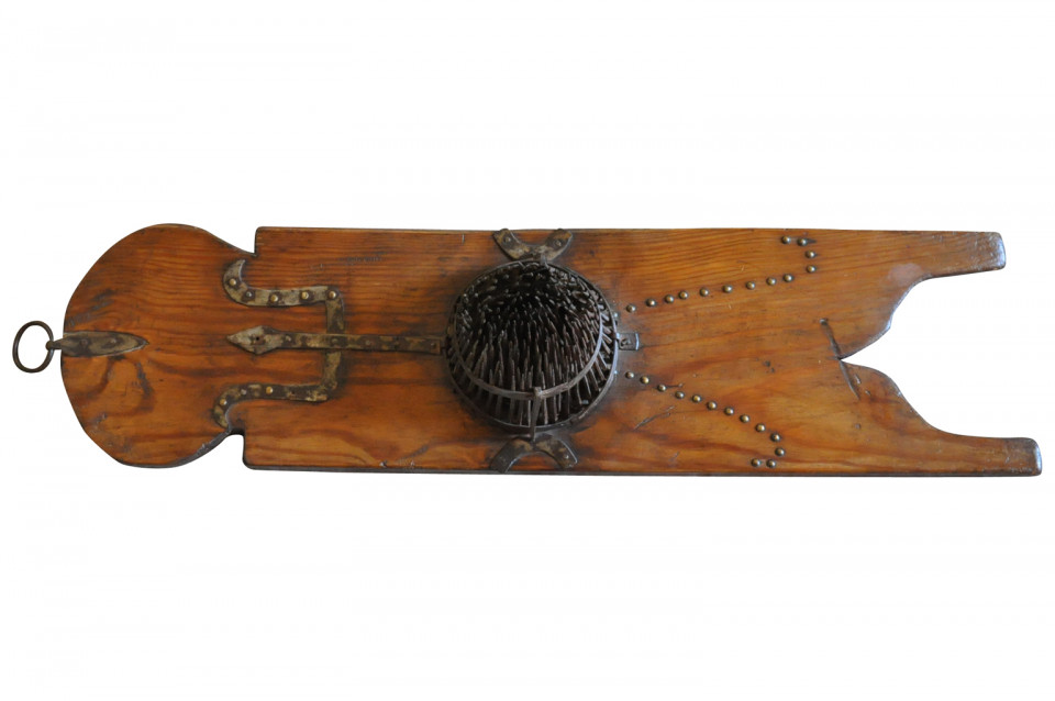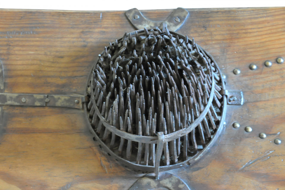 A very charming and unusual mid-19th century apparatus for combing wool. A terrific decorative accent piece for a rustic environment.