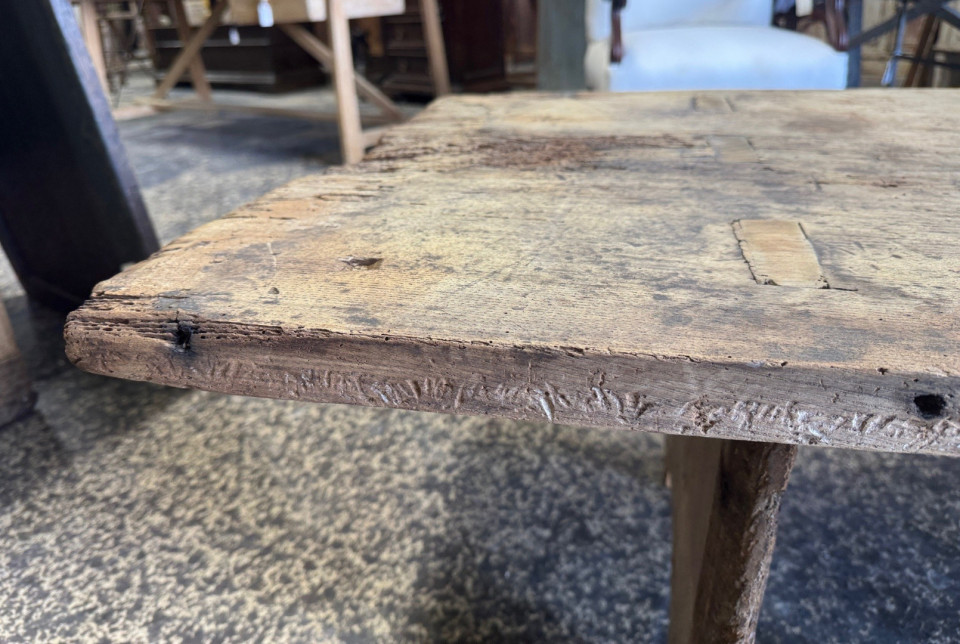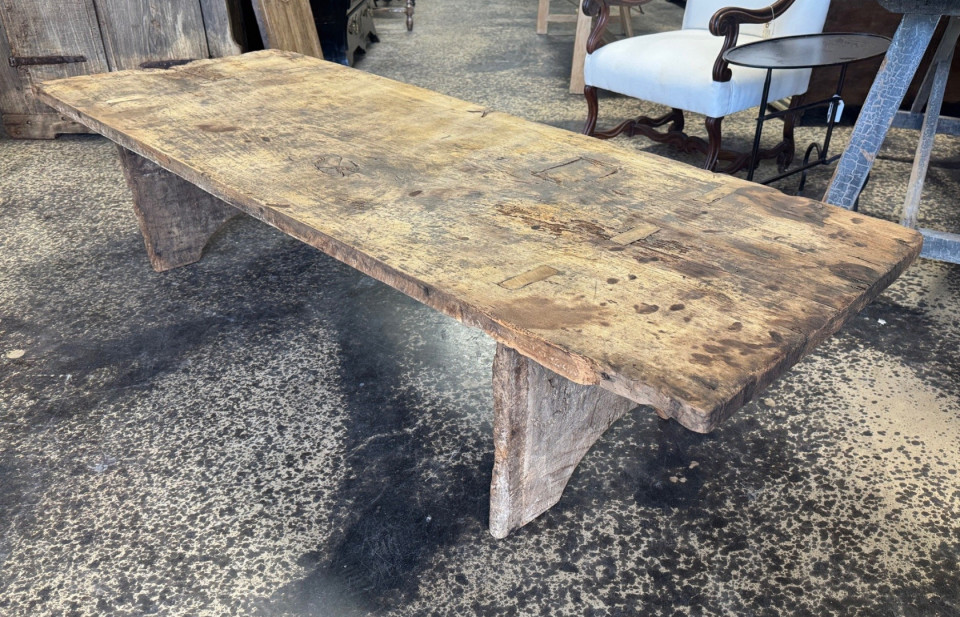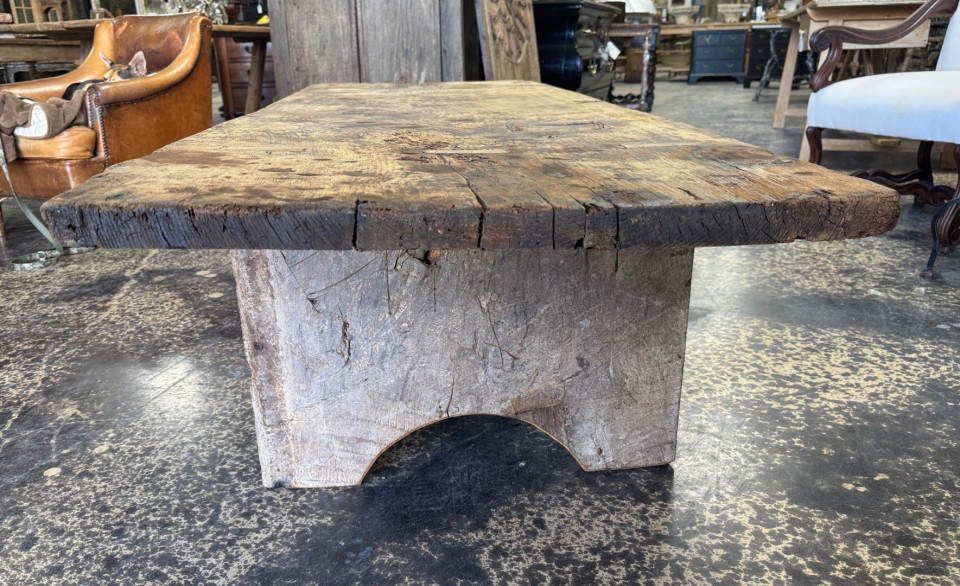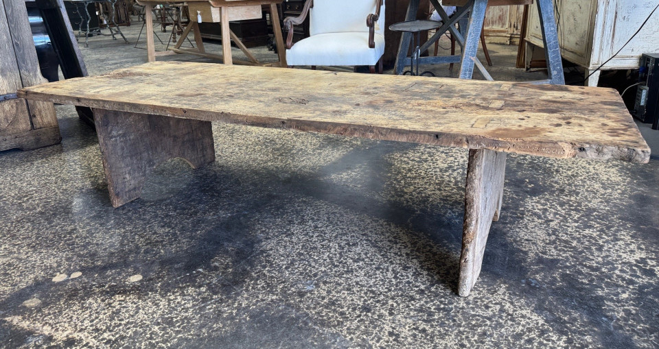 A wonderful primitive Coffee Table - Table Basse from the Catalan region of Spain. Nicely constructed from 17th century chestnut solid board planks. Great patina with very minimalist lines.