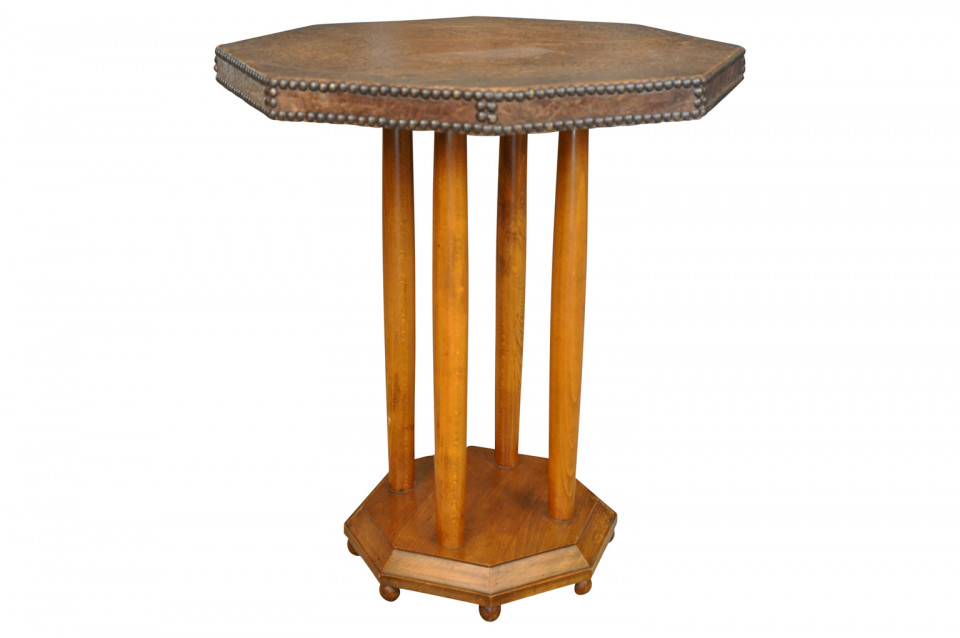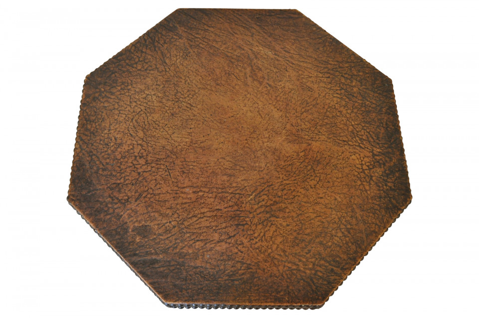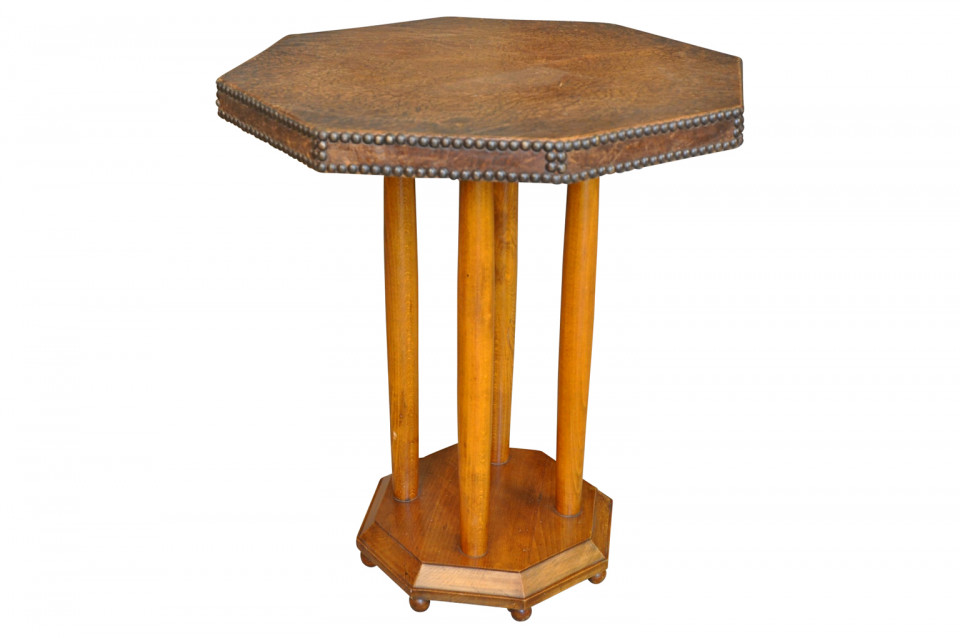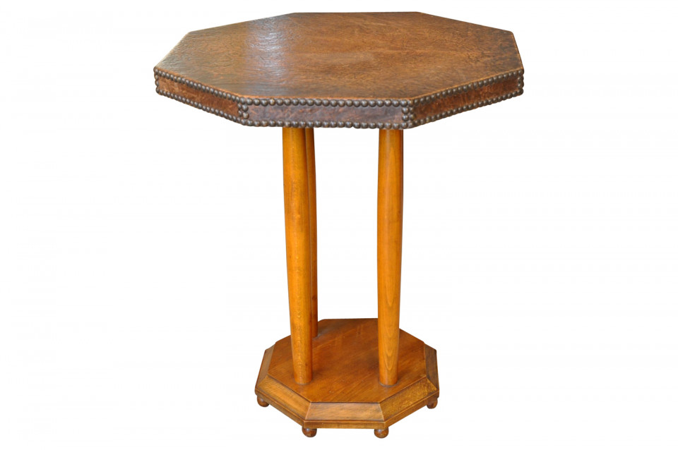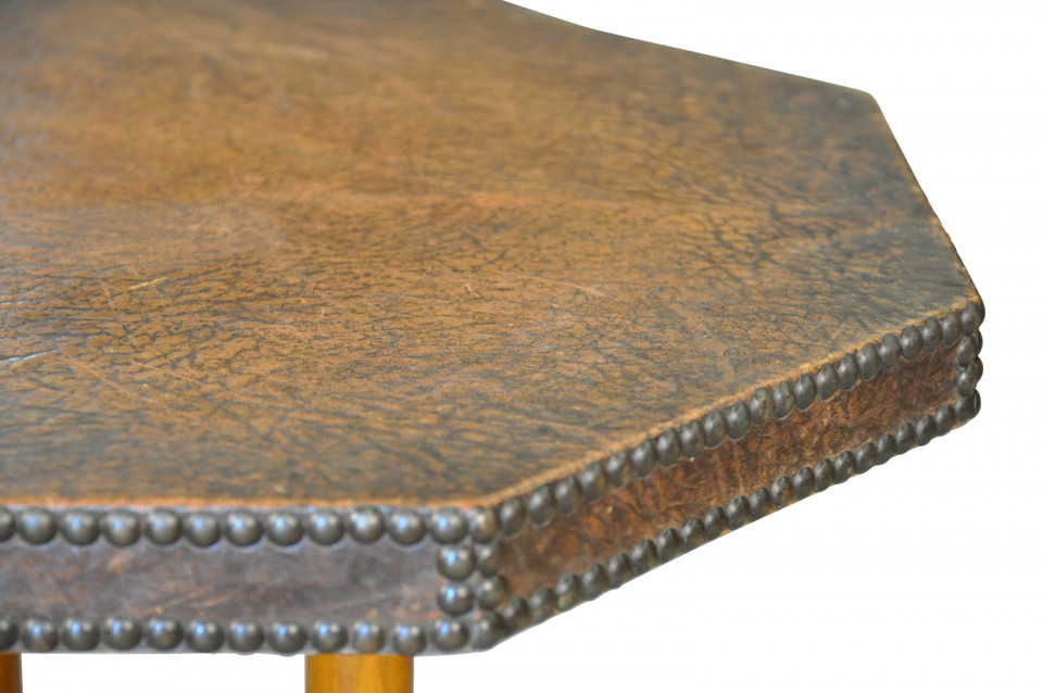 French Art Deco period leather top gueridon with handsome nail head detailing.
