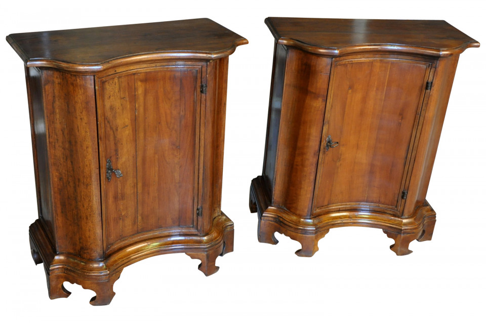 A very elegant later 19th century pair of night stands - or side cabinets from the Veneto region of Italy. Wonderfully constructed from walnut with a beautiful patina.