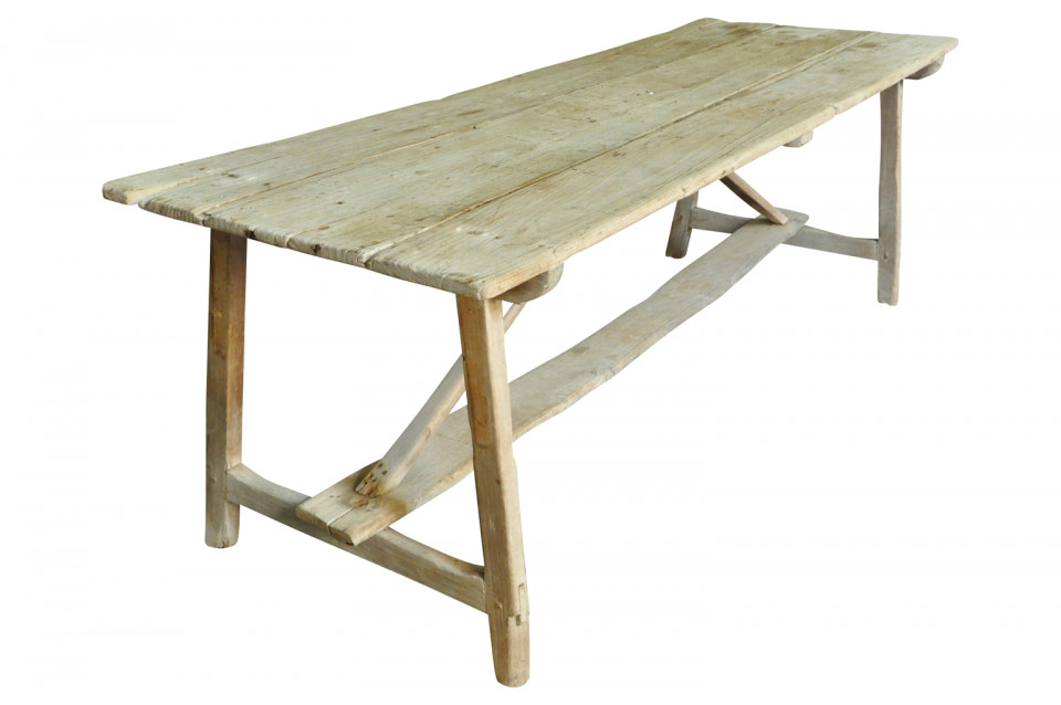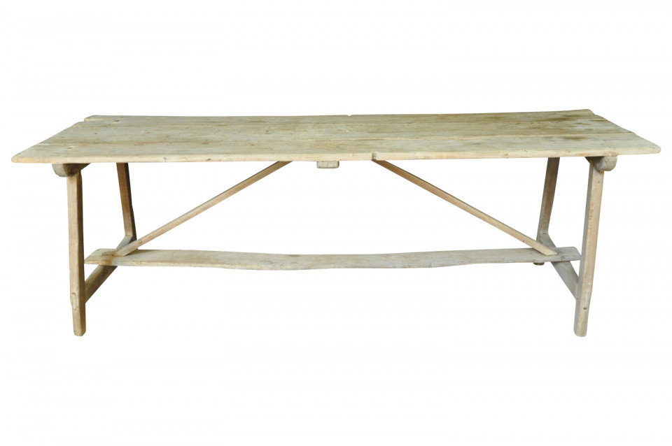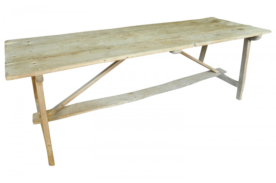 A very beautiful mid-18th century farm table - trestle table from the Catalan region of Spain. Soundly constructed from naturally washed poplar. Clean minimalist lines lend this table a very contemporary feel.