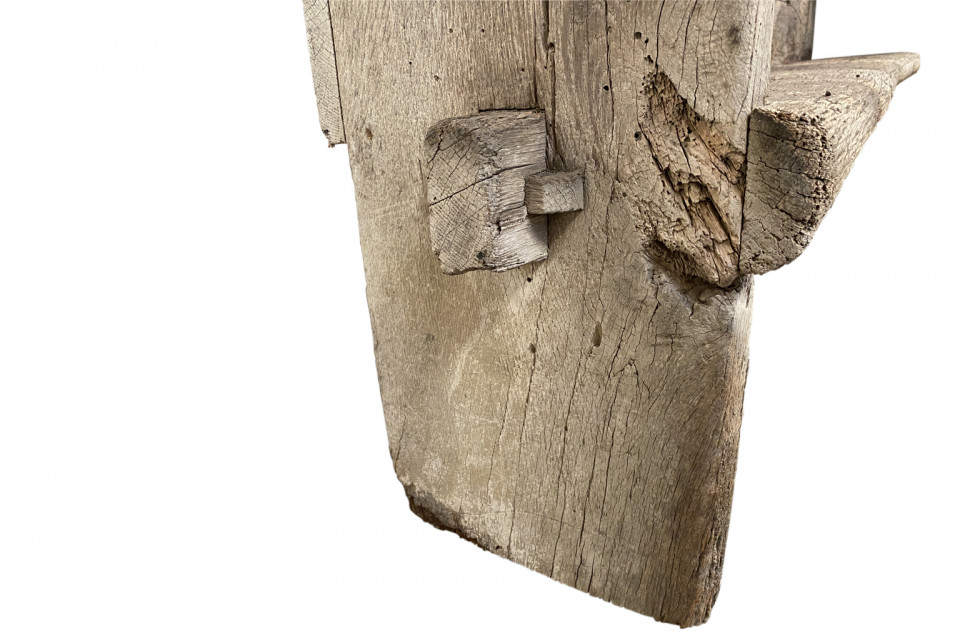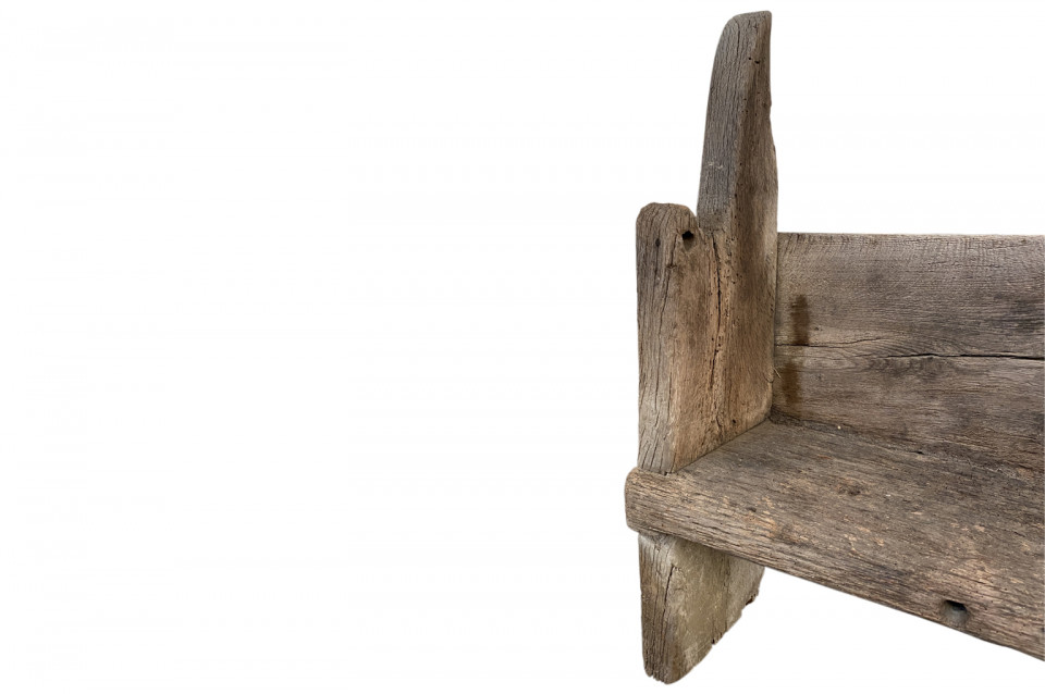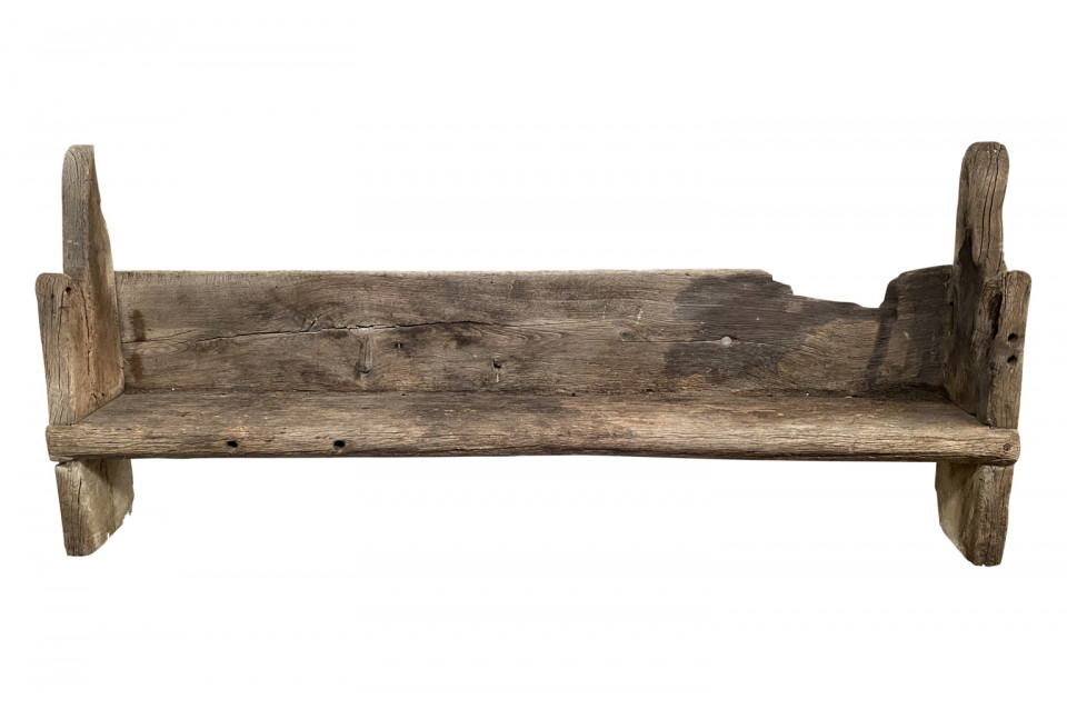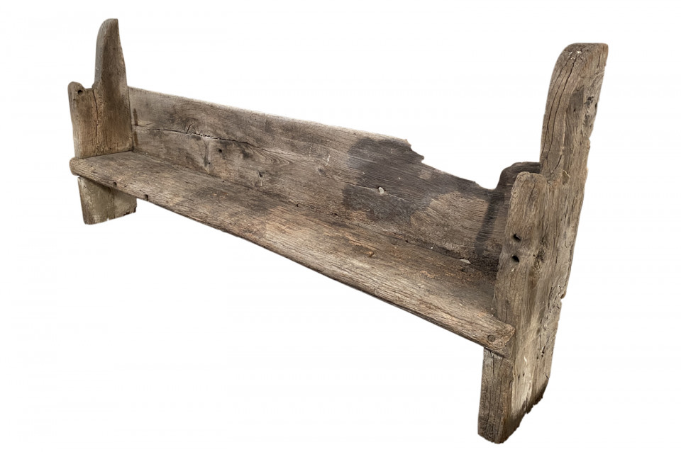 An exceptional and very rare Gothic period bench from France. Referred to as a Banc Sarazin - originally used inside of the very large kitchen fireplaces of great chateaux and palaces. An extraordinary piece.