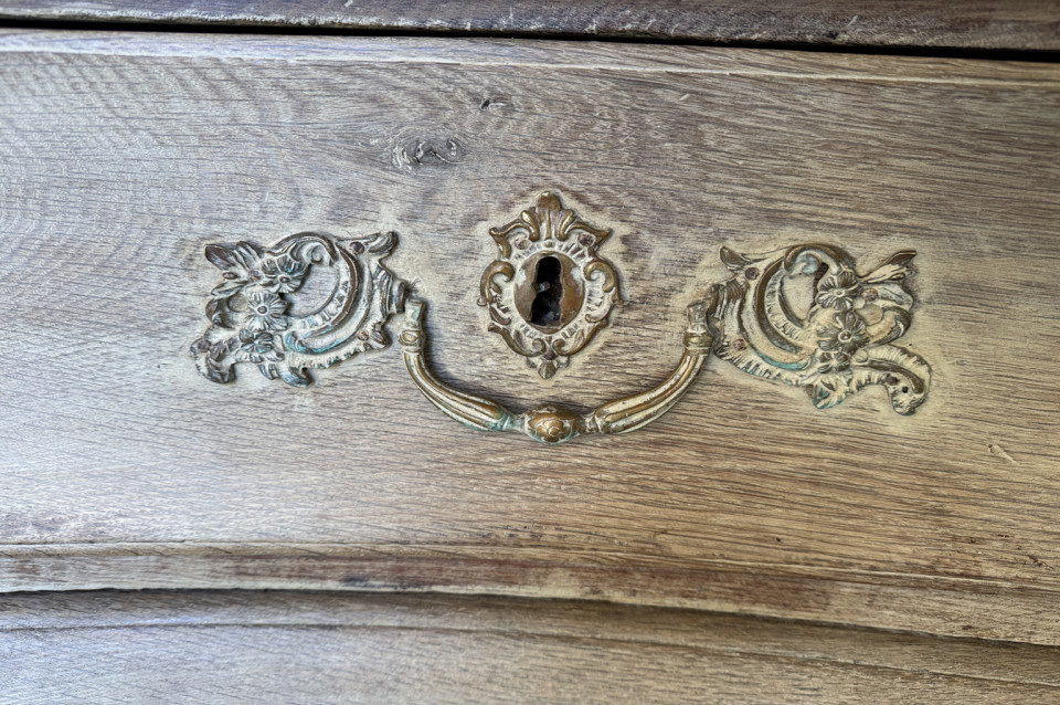 A very beautiful early 18th century French Regence Commode. Wonderfully constructed from sturdy oak in arbalete form with 4 drawers. A stunning addition to any classical surrounding.