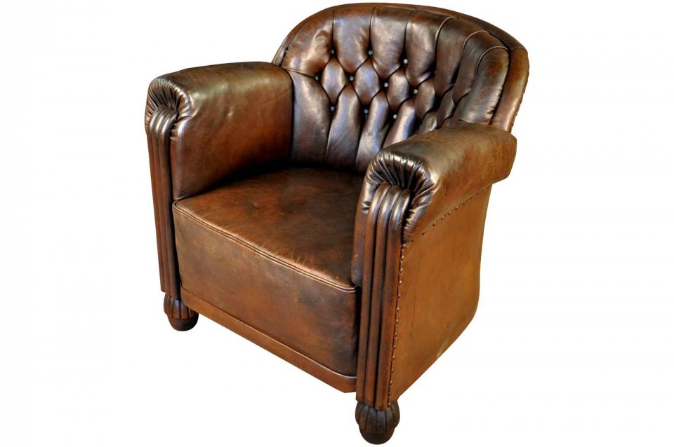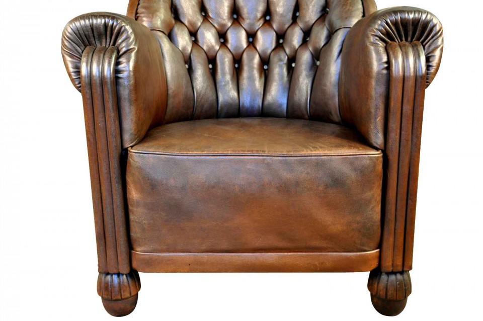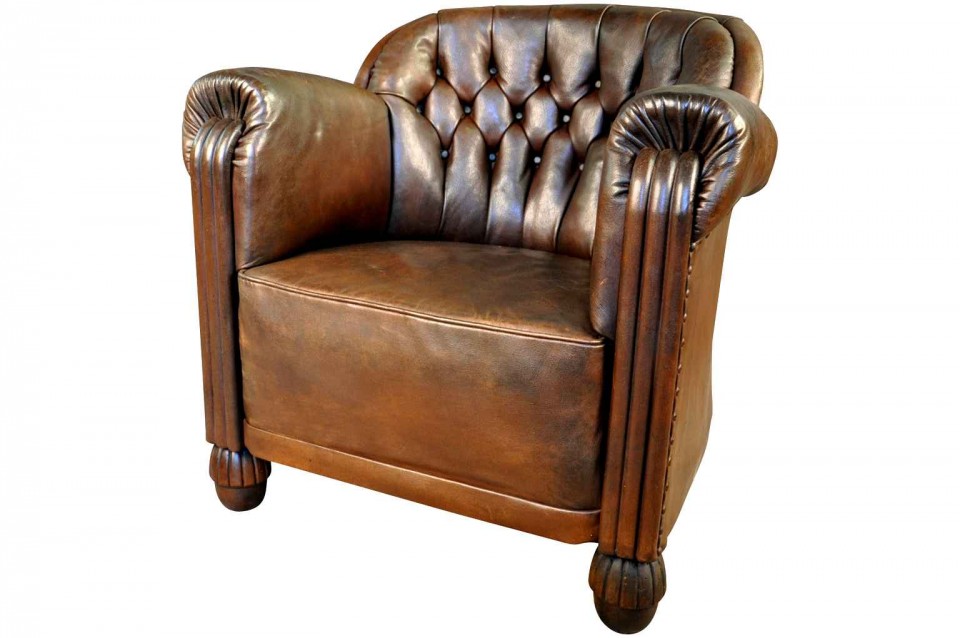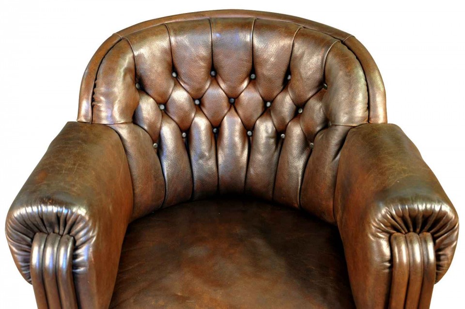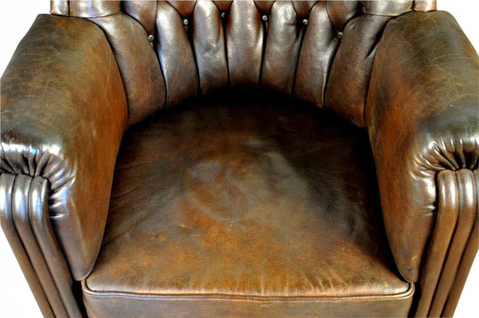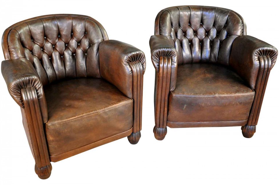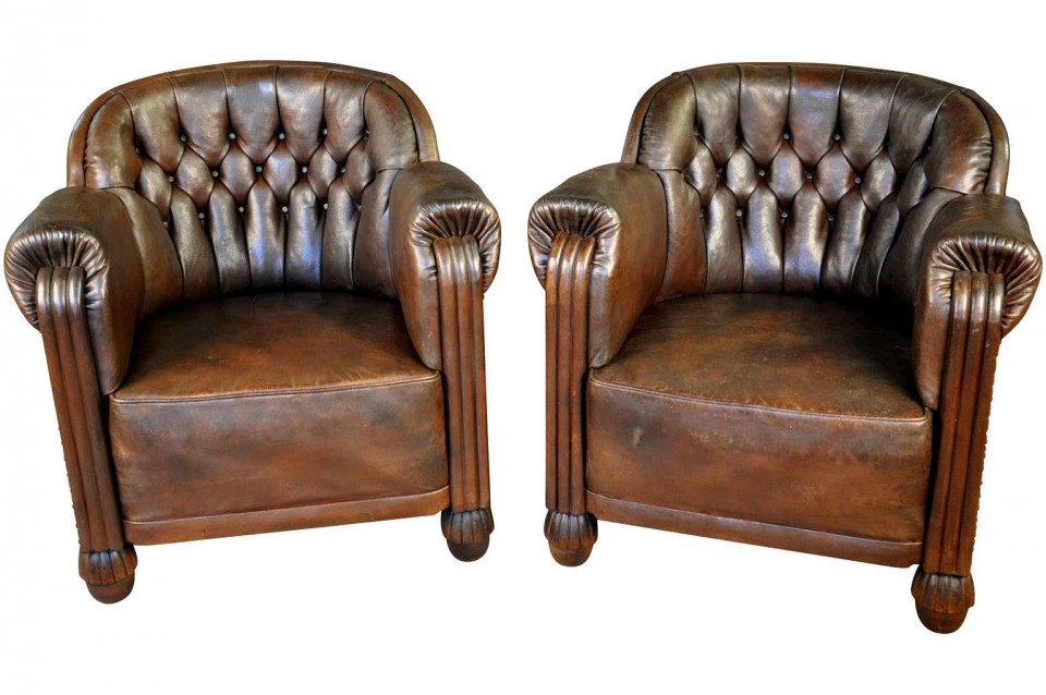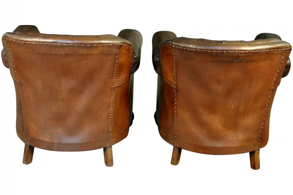 Pair of leather “CLUB” chairs from Portugale Circa 1930 H31” H(seat) 16,1/4” L30,7/8” W24”
