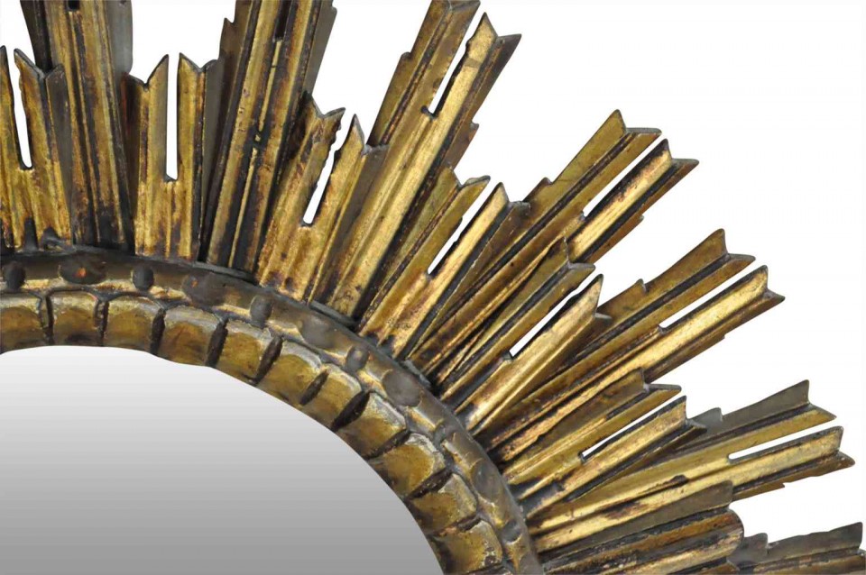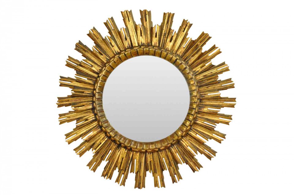 A very lovely Spanish Sunburst Mirror in gilt wood. Wonderful as a powder room or vanity mirror.
