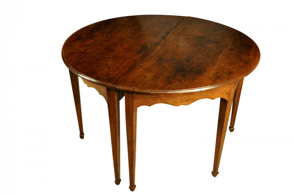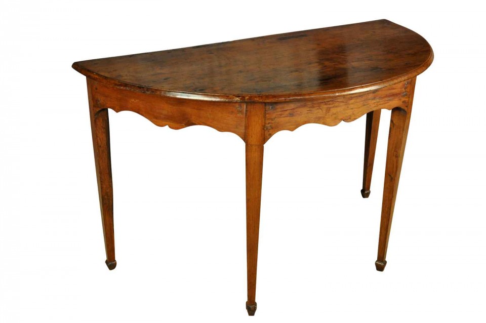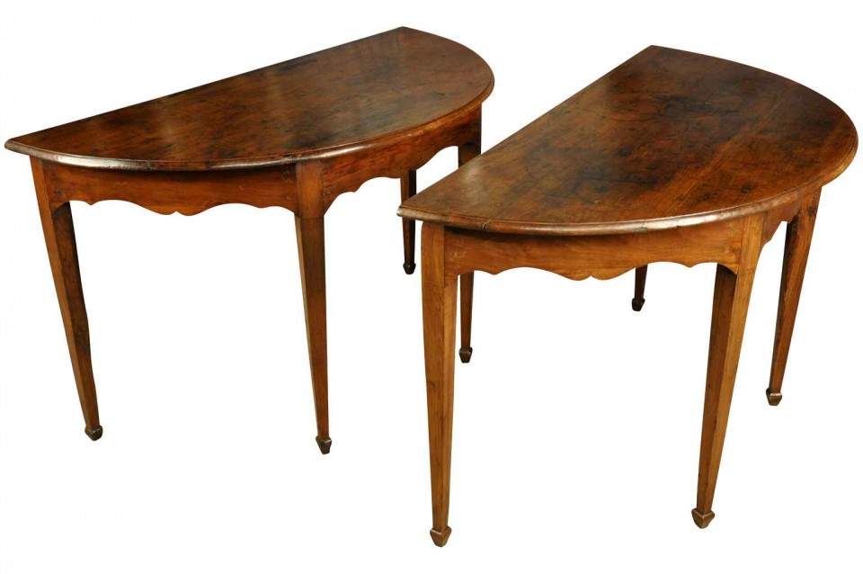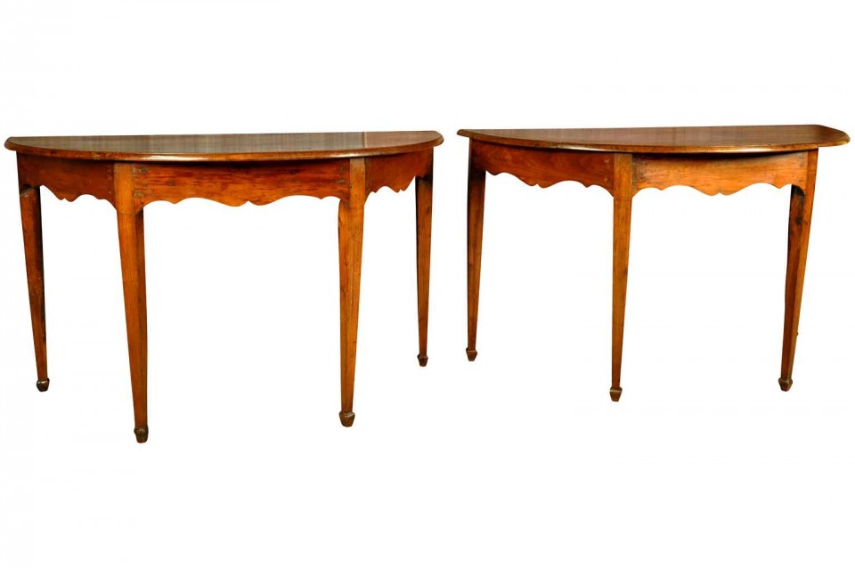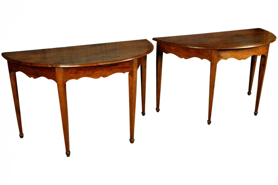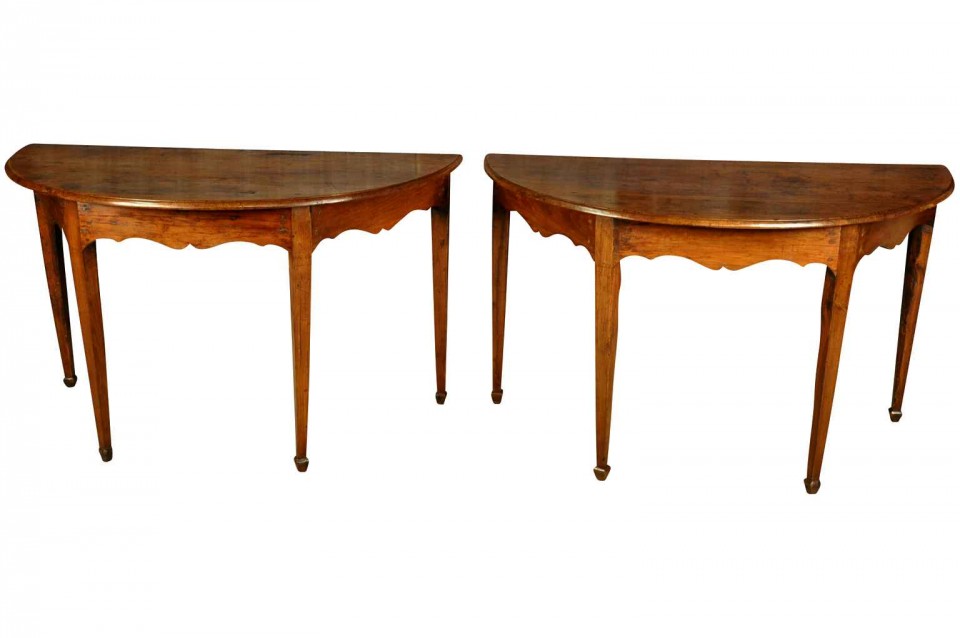 Pair Italian early 19th century “demi lune consoles” in walnut Directoire period , circa 1830, north Italy (Genova) H29,1/2” L49,3/8” W24,1/2”