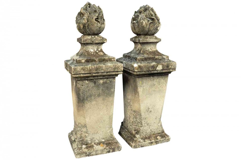 An outstanding Pair Of 19th Century Flambeaux Finials In Stone