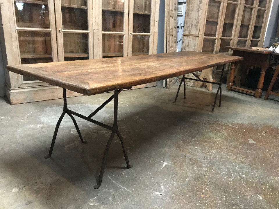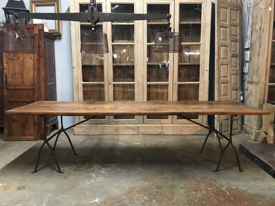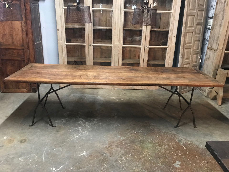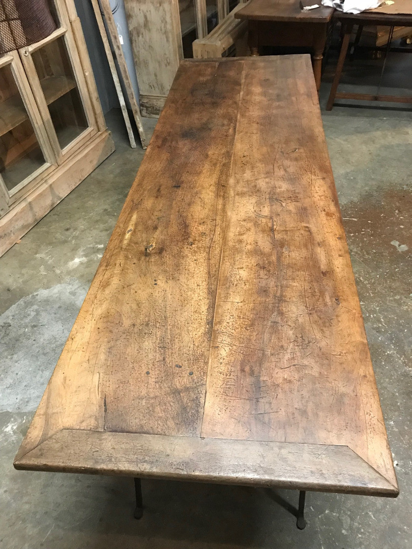 A very handsome early 19th century Northern Italian Dining Table with a very beautiful walnut top and iron base. Very sound and sturdy. Terrific patina. A wonderful table for any dining room or covered porch.