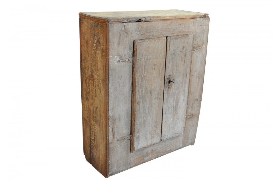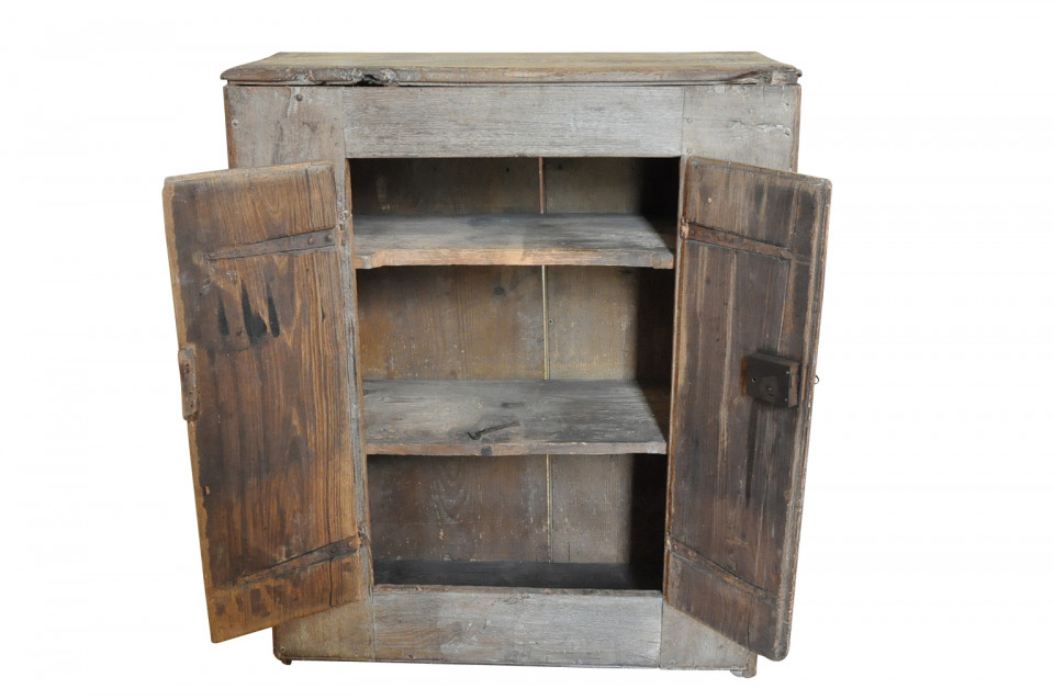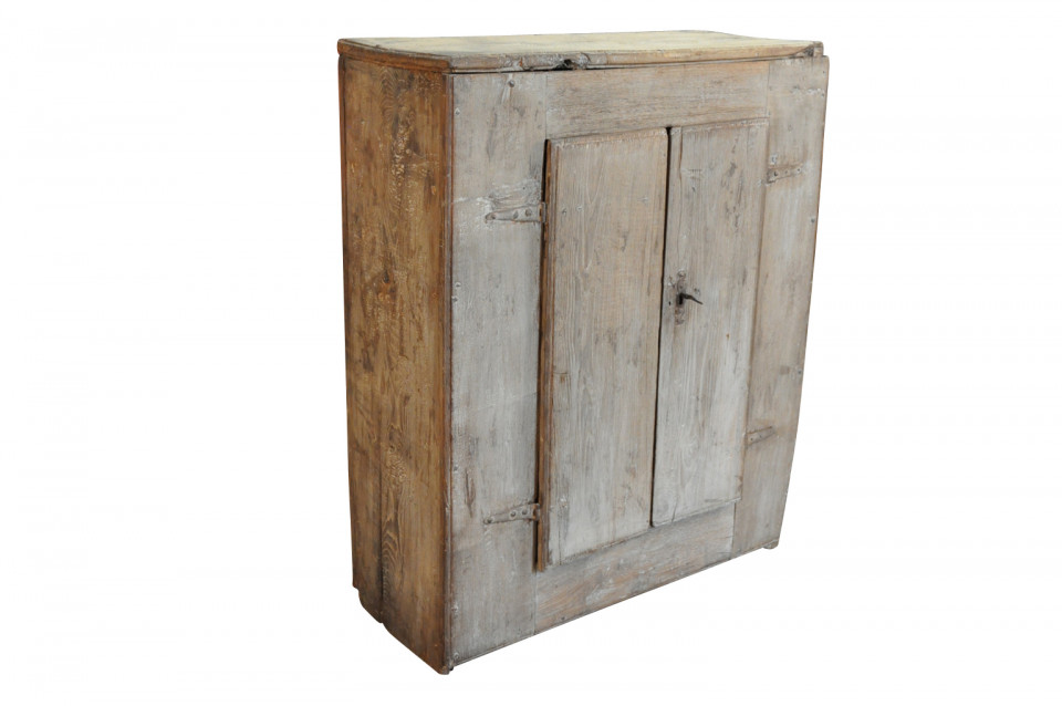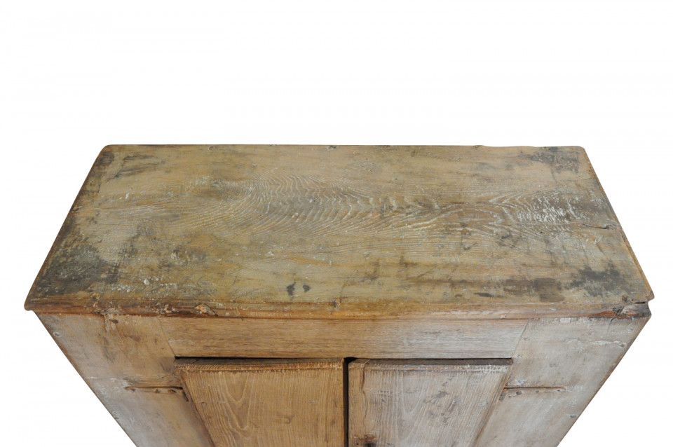 A very charming and primitive cupboard from the Catalan region of Spain. Soundly constructed from painted oak with an fabulous worn patina.