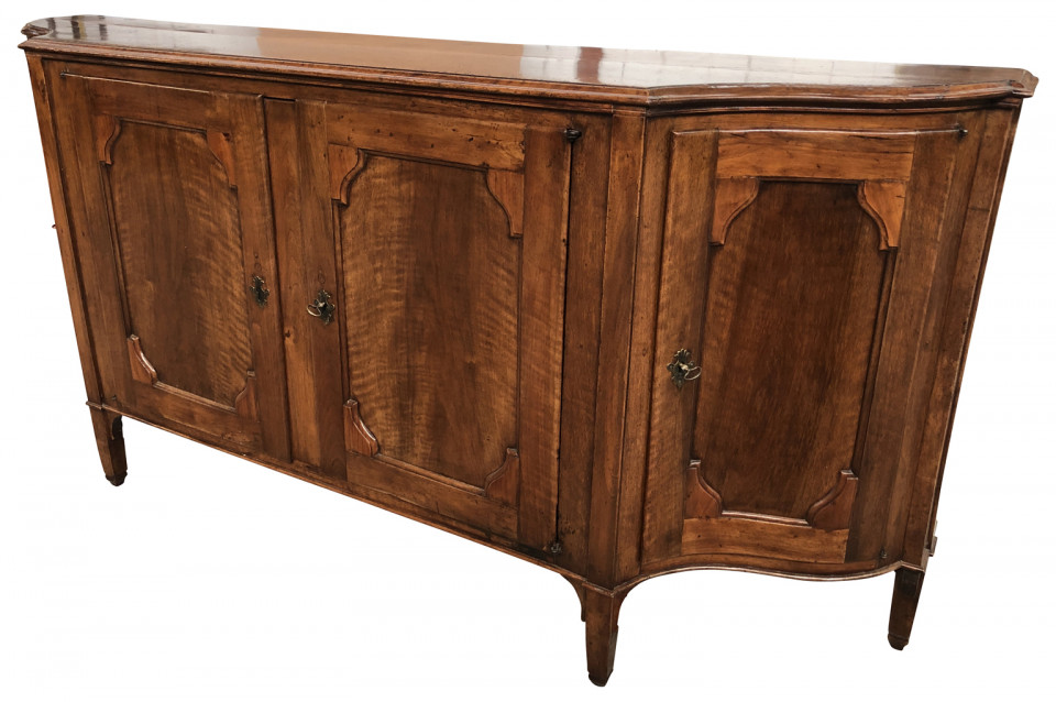 An exceptional and outstanding 18th century Credenza from Venice. Beautifully constructed from stunning walnut with very sculptural form, wonderful edge finish to the top, four doors with molded panels and interior shelving. A breathtaking piece offering wonderful storage. Excellent patina.