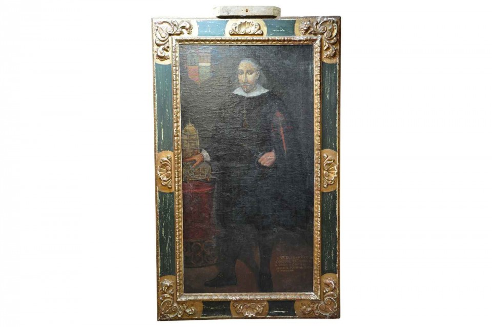 A very early life size painting of a Spanish Gentleman. Oil on canvas - housed in a polychromed frame.