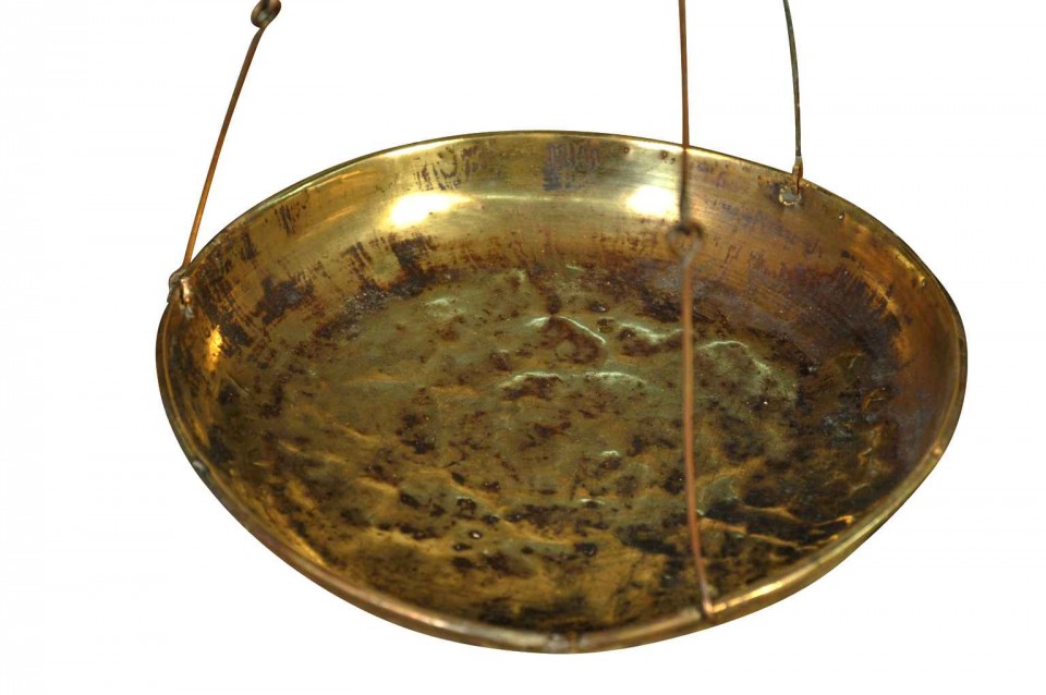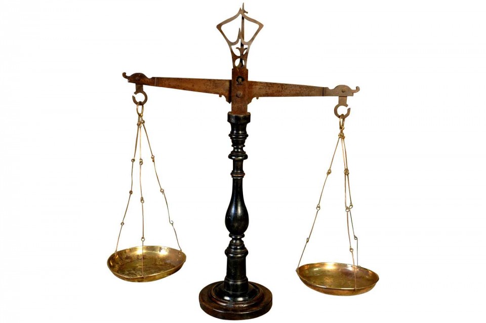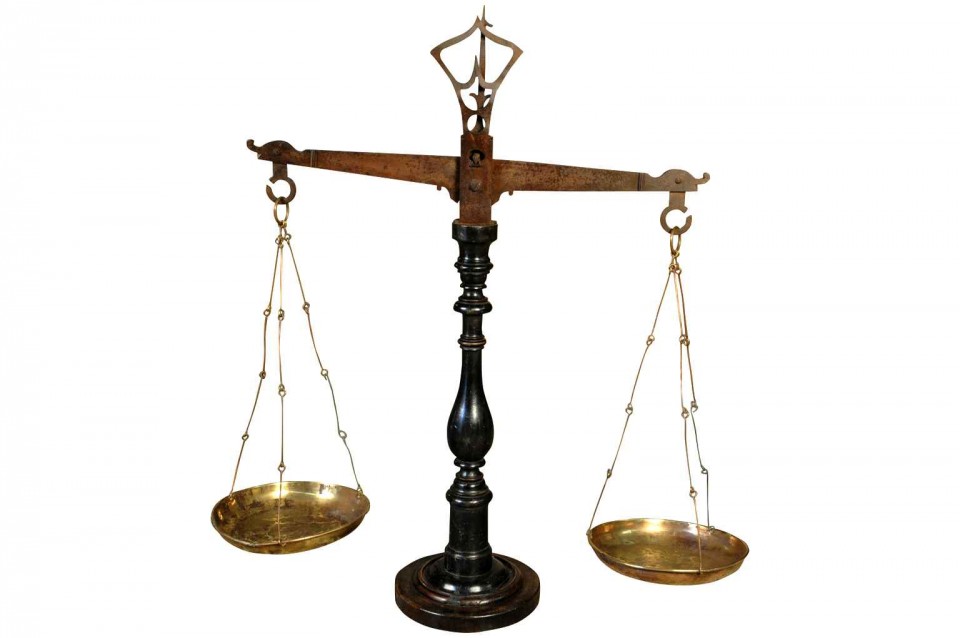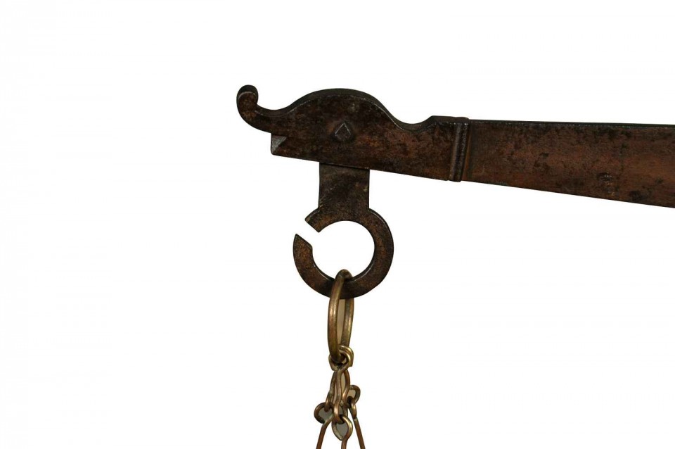 French 19th century “Balance/Scale” in wood,iron and brass ,circa 1880 H38,1/8” L34,3/4” W14”