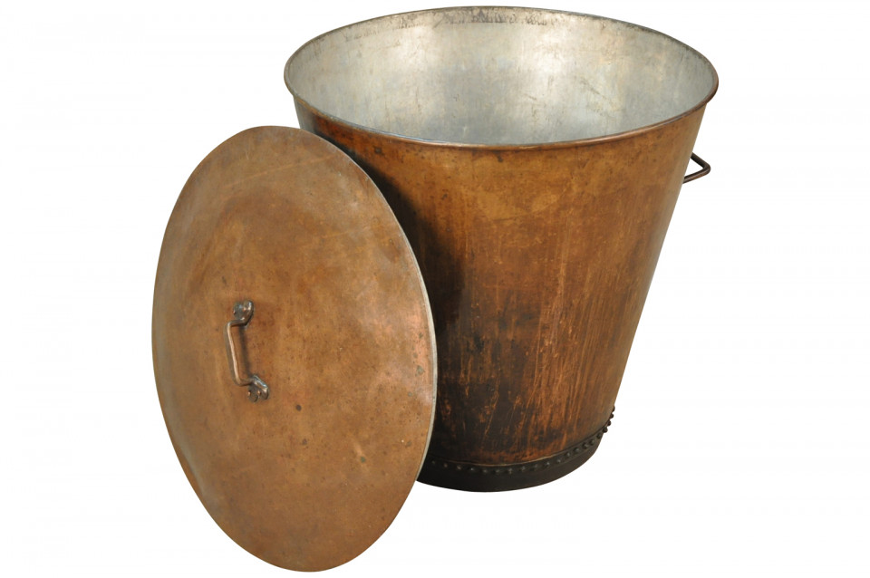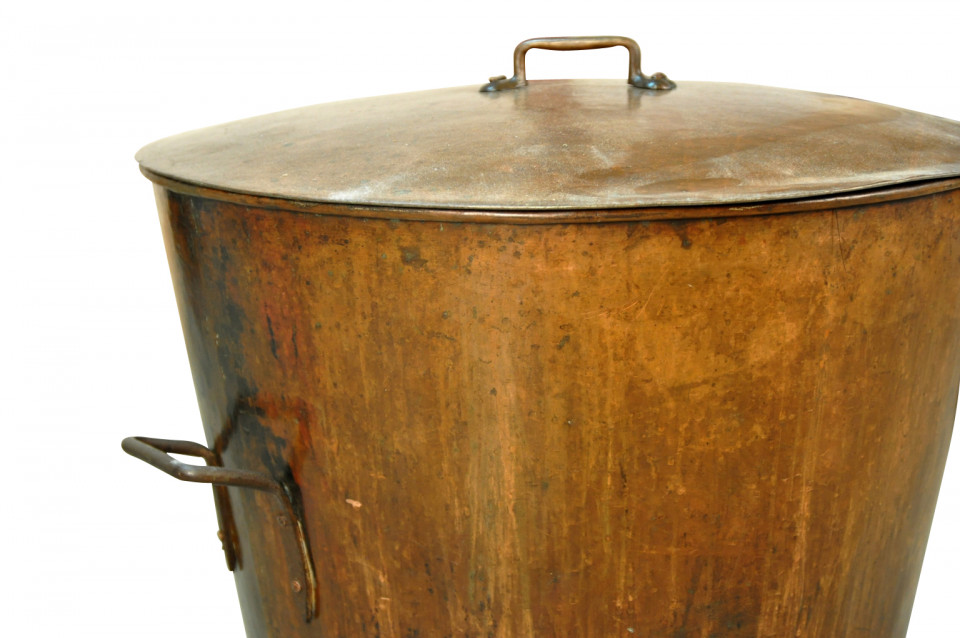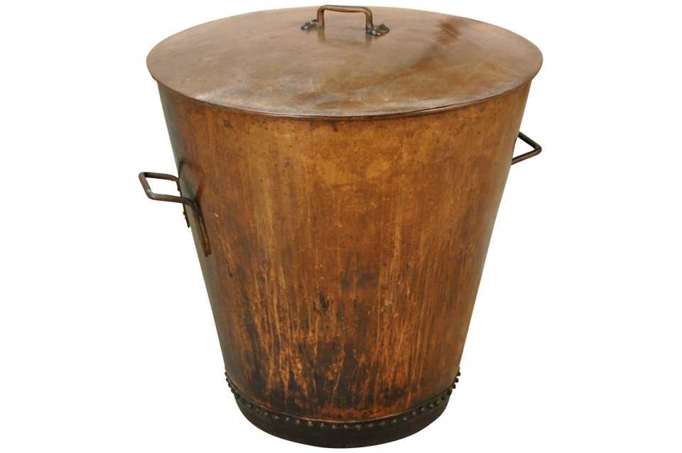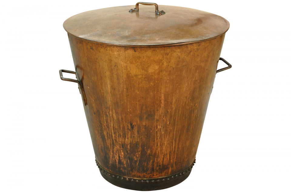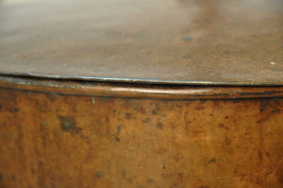 A very handsome later 19th century French Lidded Copper Vessel. Constructed from heavy gauged copper with riveted detail.