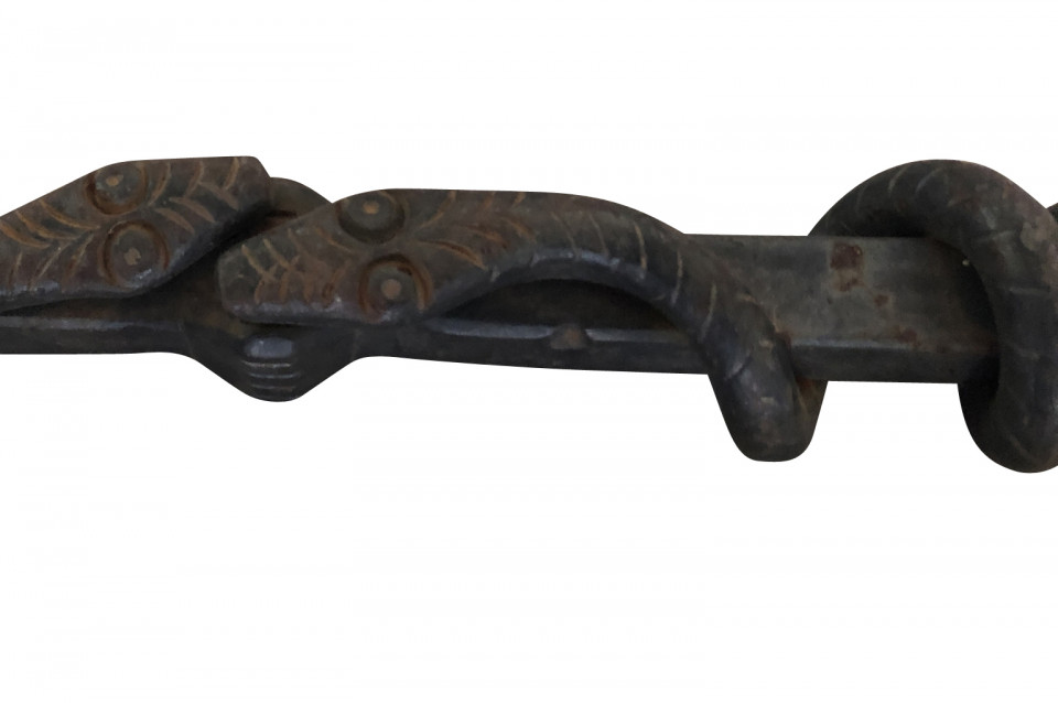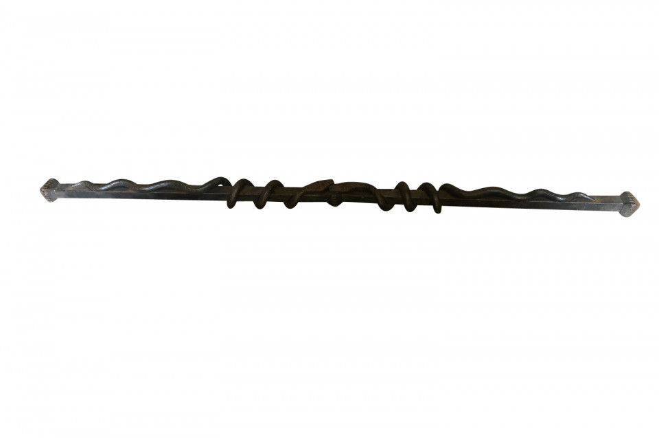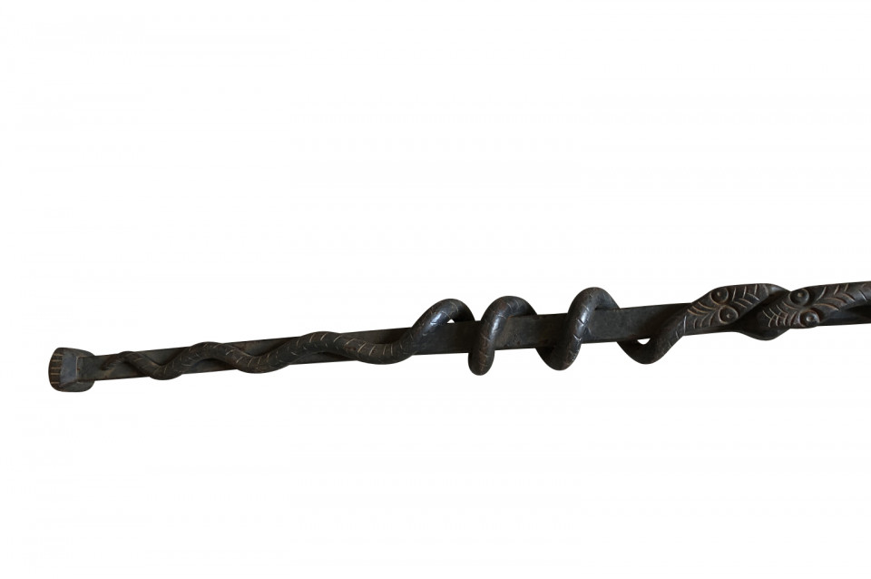 A very beautiful French 19th century hand forged bar that originally belonged to a set of andirons. Expert craftsmanship and quality. Decorated with a snake motif.