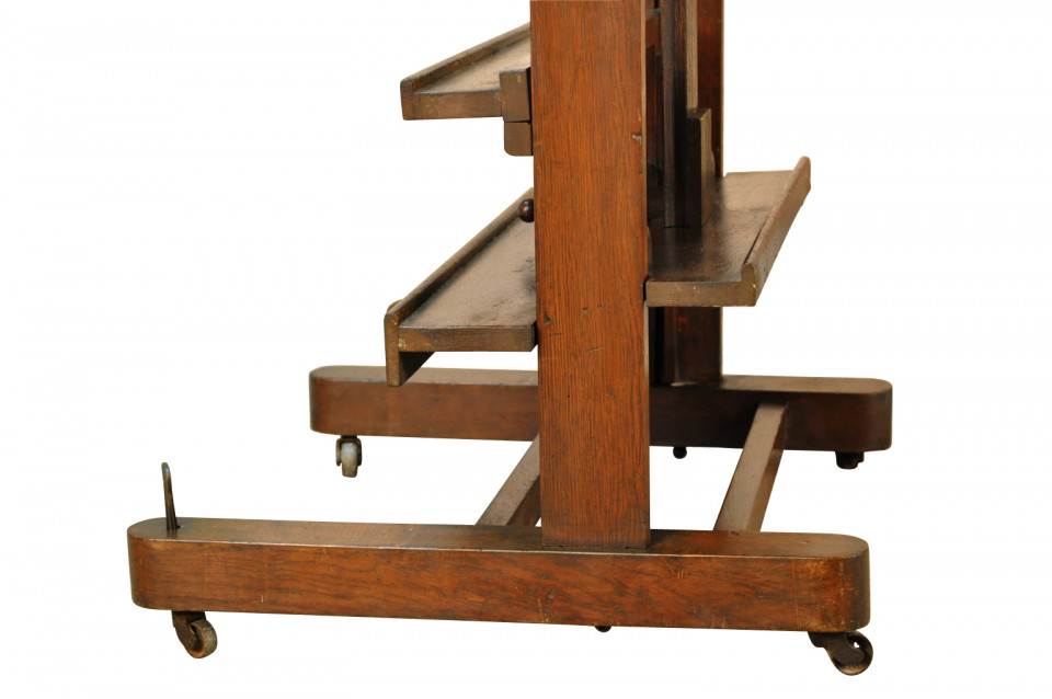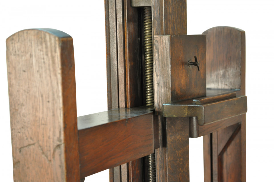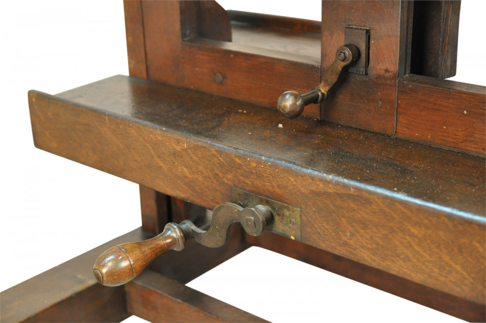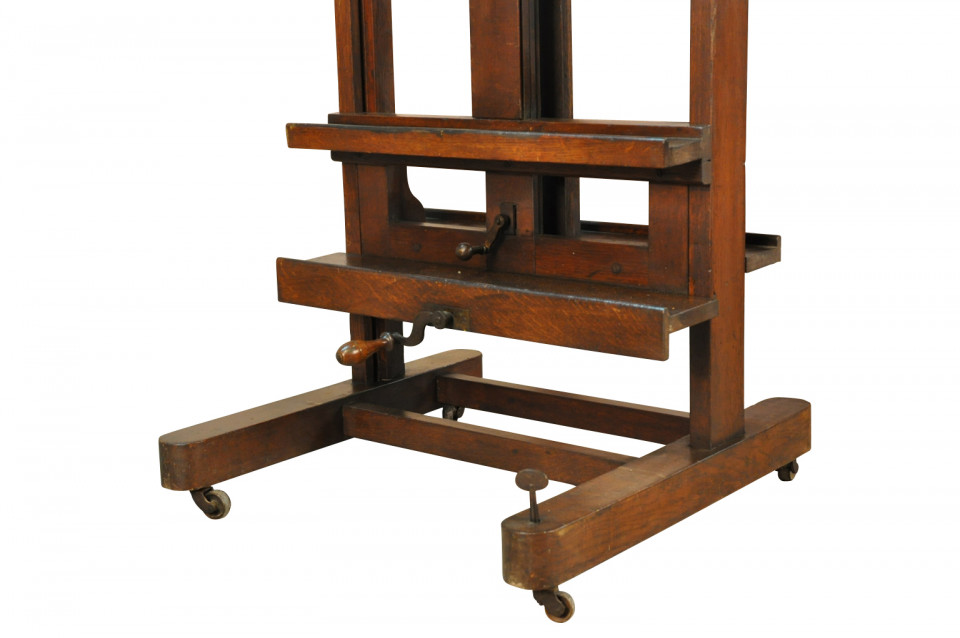 An exceptional French mid-19th century Double Sided Artist Easel - Chevalet from the South of France. Sturdily constructed from richly stained oak. Perfect not only to paint from, but to display a flat screen television, mirrors or paintings.