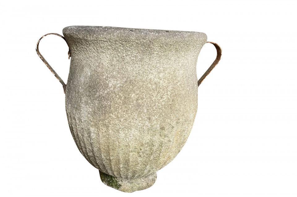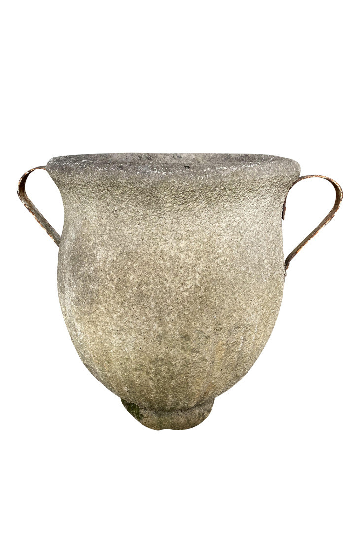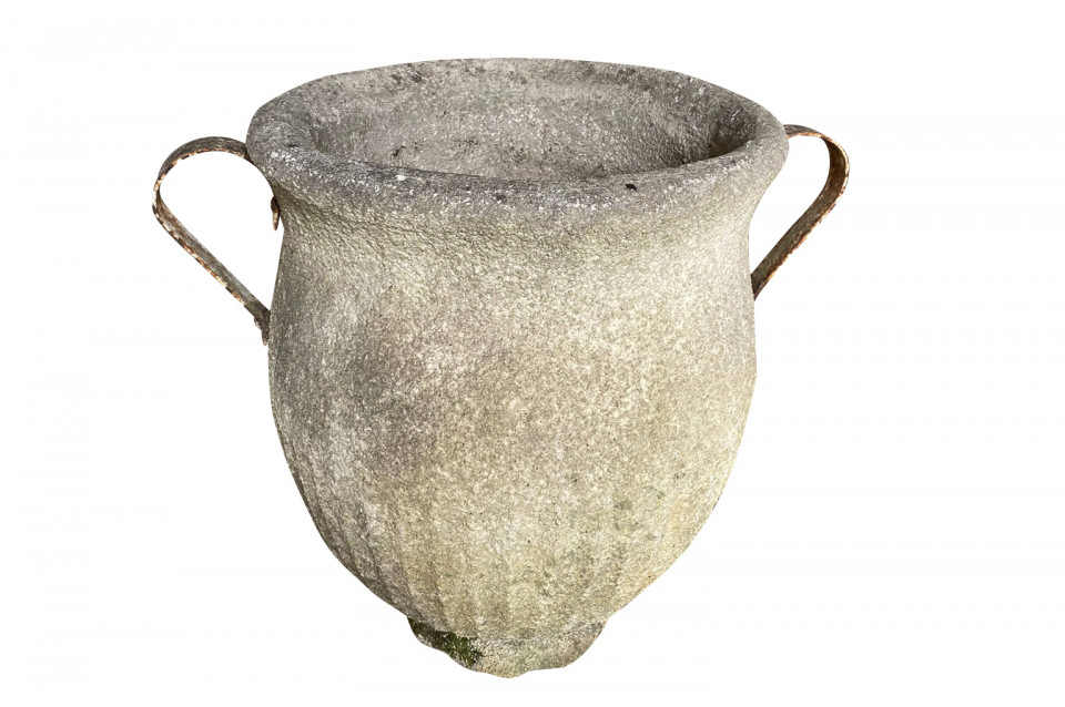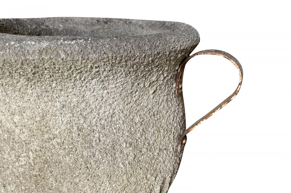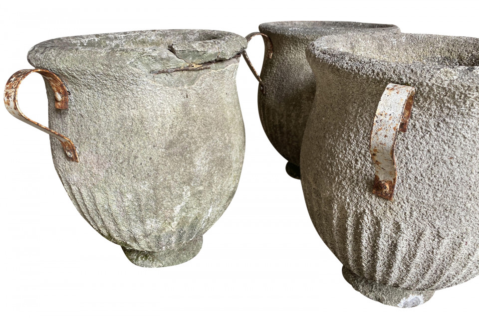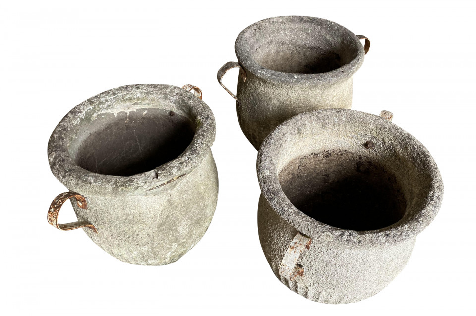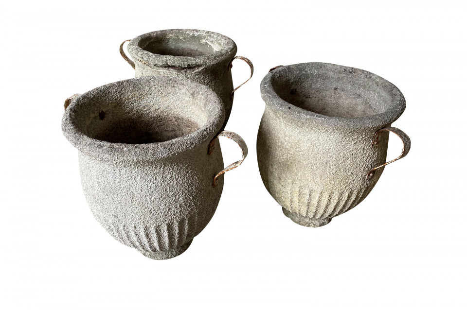 A very attractive set of 3 Jardinieres - Planters from the South of France beautifully made from cement with iron handles. Wonderful for any garden or interior.