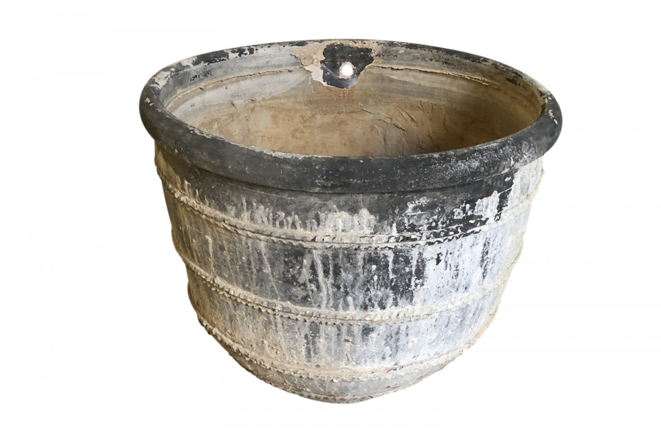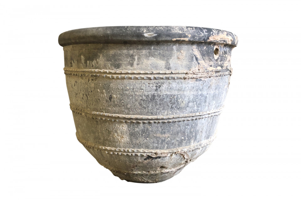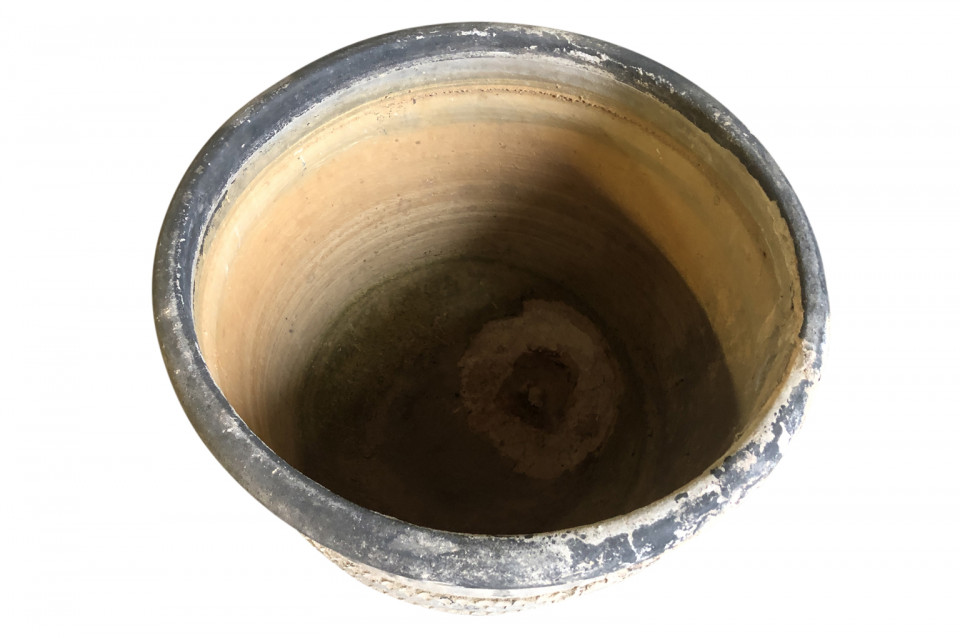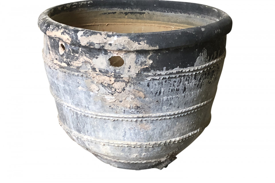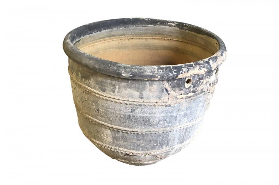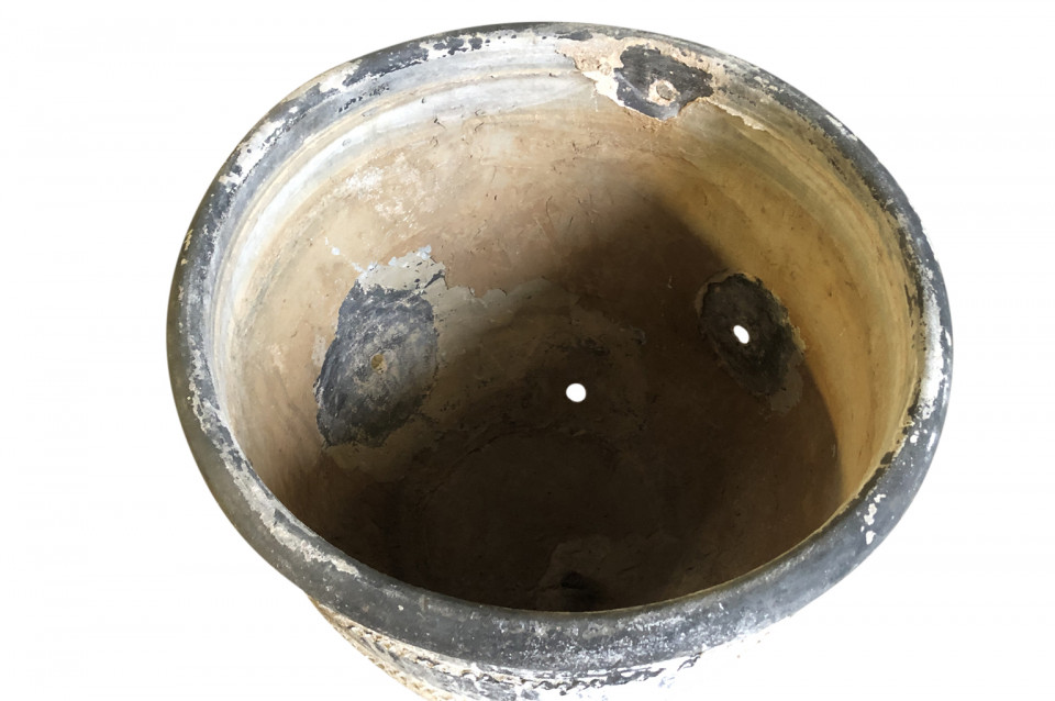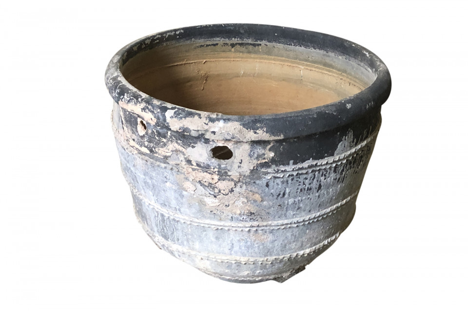 A rare and stunning pair Black Terracotta Urns from the Girona area of Spain. Beautiful patina and condition. Wonderful planters for any interior of exterior. One urn measures 26 1/4" H X 30 3/4" diameter. The second urn measures 26 1/4" H X 31 3/4" diameter.