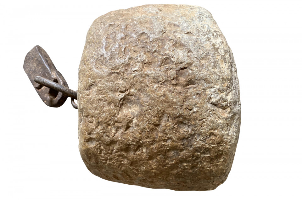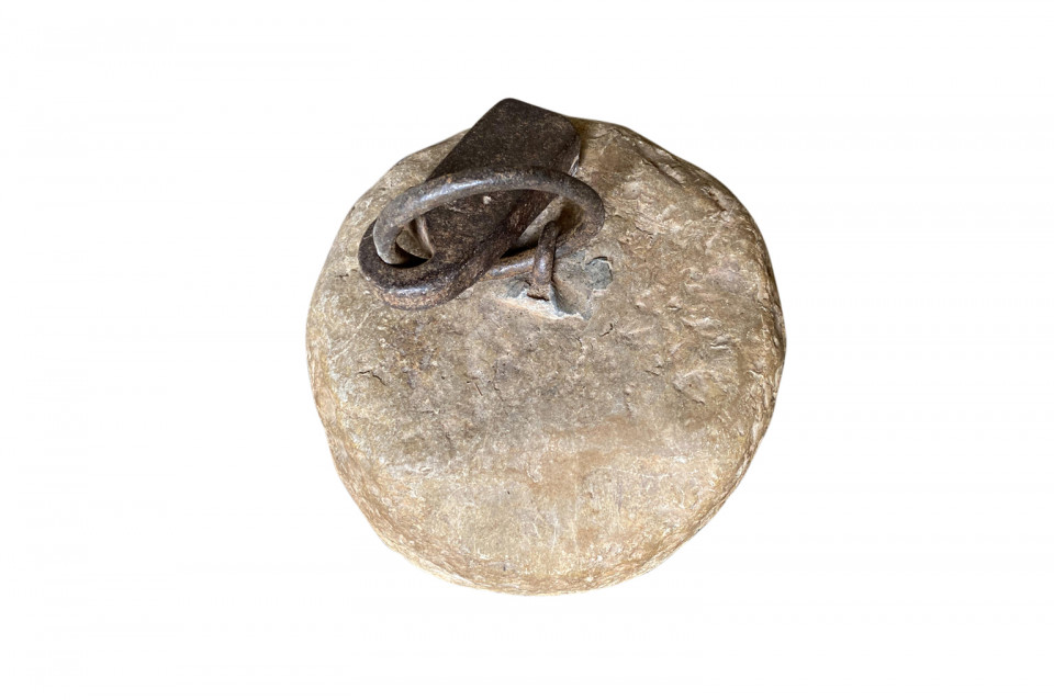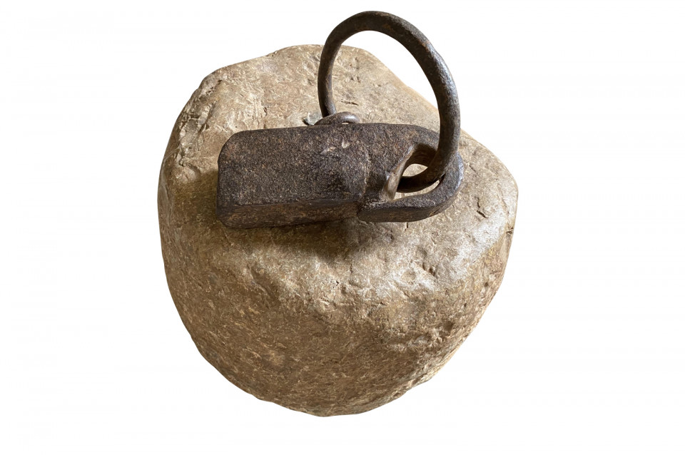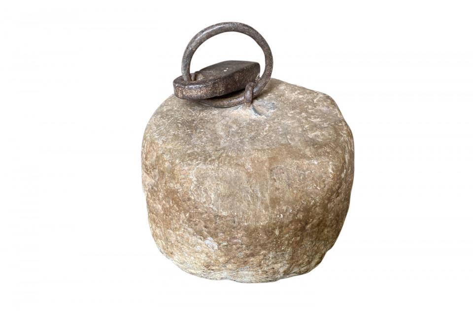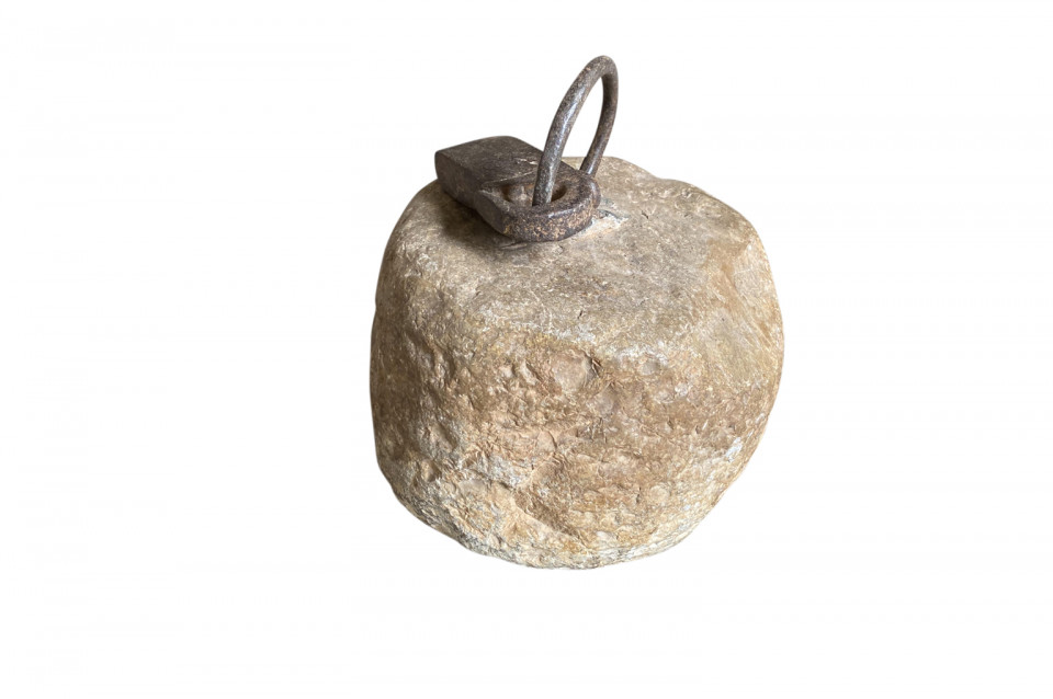 A beautiful 17th century counter weight from Spain in stone and iron. A wonderful accessory for any table top, bookcase or garden.