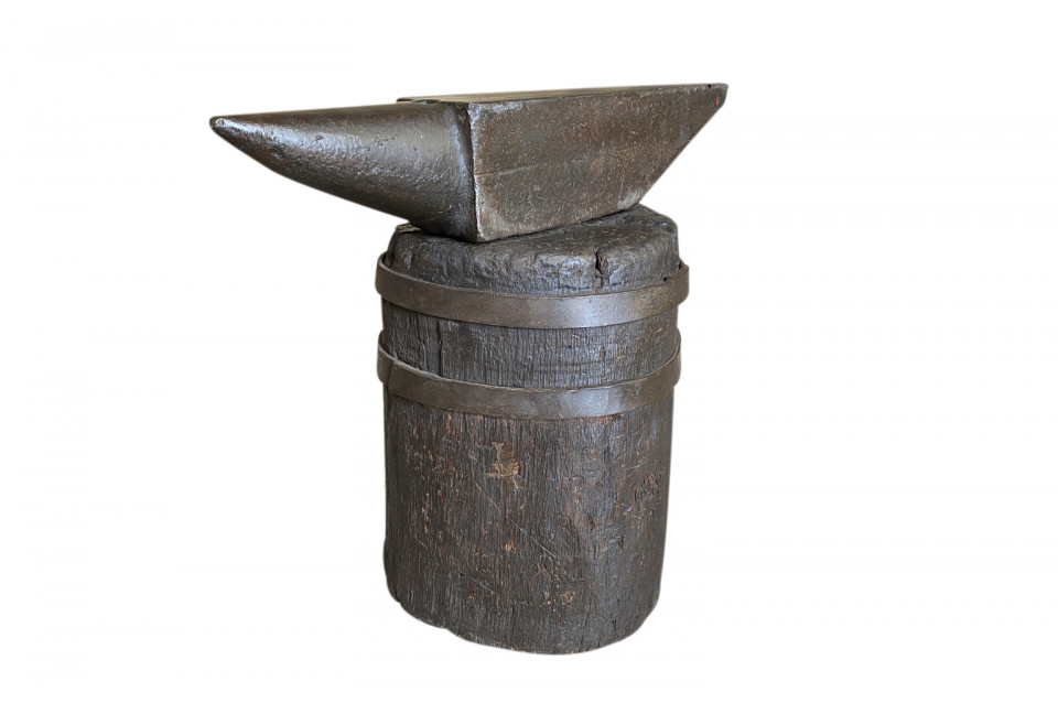 A very handsome 19th century Anvil on its wooden base from the Catalan region of Spain. The perfect Man Cave Cocktail Table.
