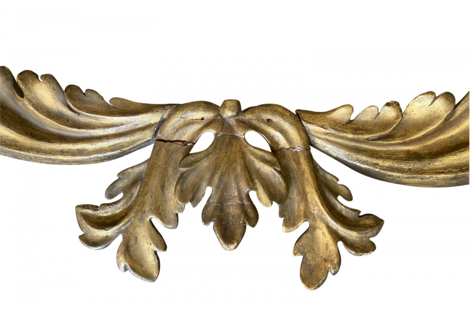 A very lovely 18th century giltwood pediment from Venice, Italy. Wonderful patina. Beautiful used as a window treatment or incorporated into a headboard.