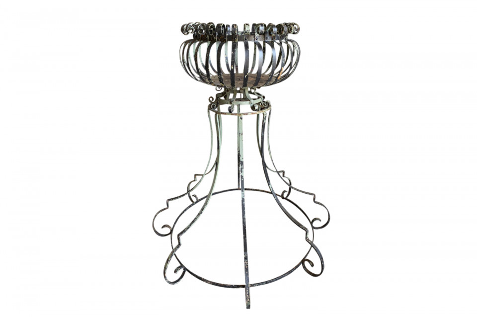 A charming later 19th century Jardiniere - Porte Plante from the South of France. Beautifully constructed from painted iron. A wonderful accent piece for any interior or garden. The diameter of the top is 24 1/4"