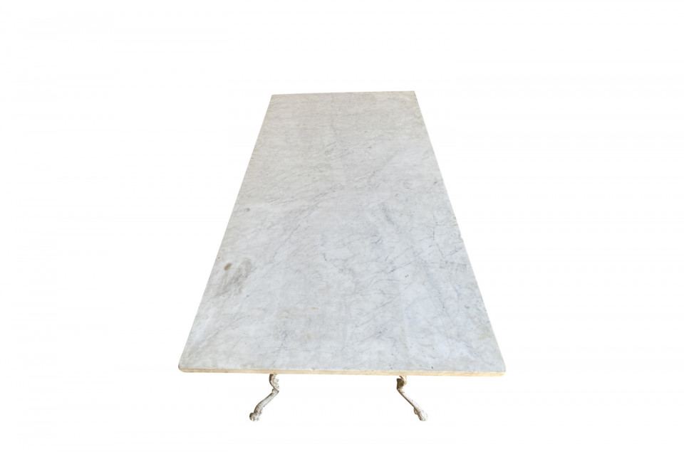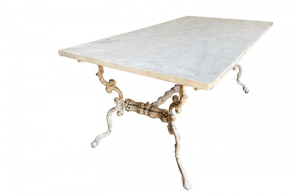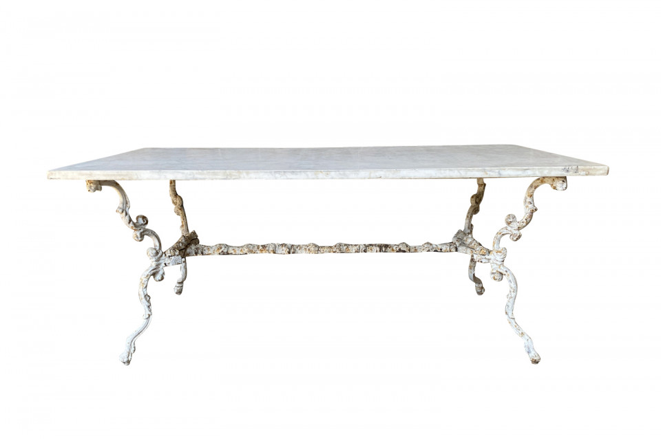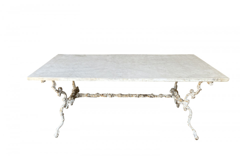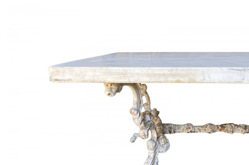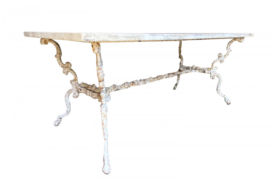 A very lovely mid-19th century Garden Dining Table from the Provence region of France. Beautifully constructed from a painted cast iron base with its original marble top. Perfect for any interior or garden.