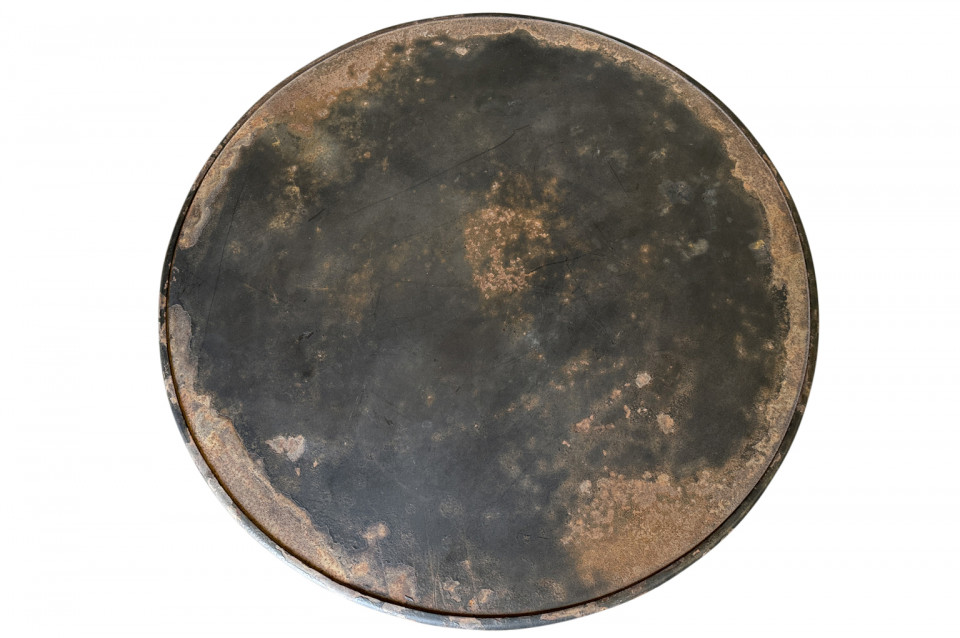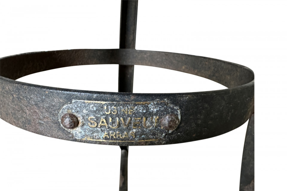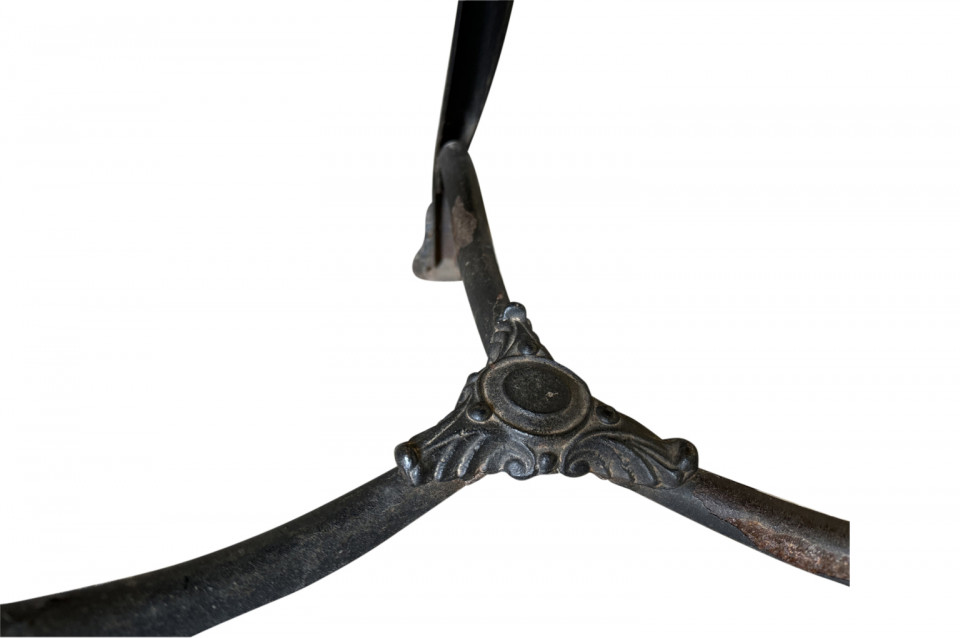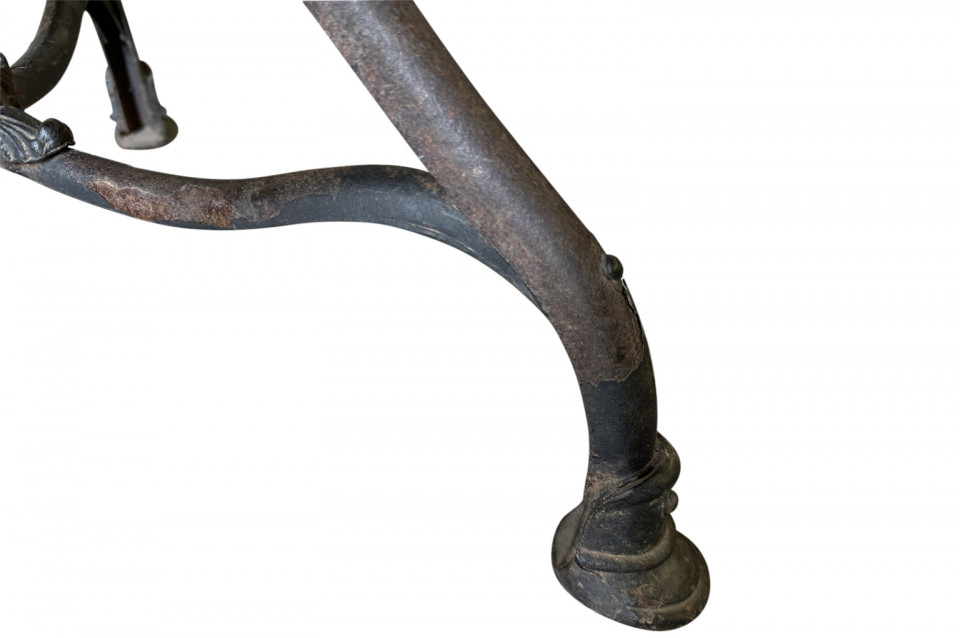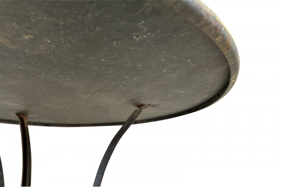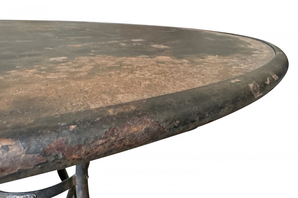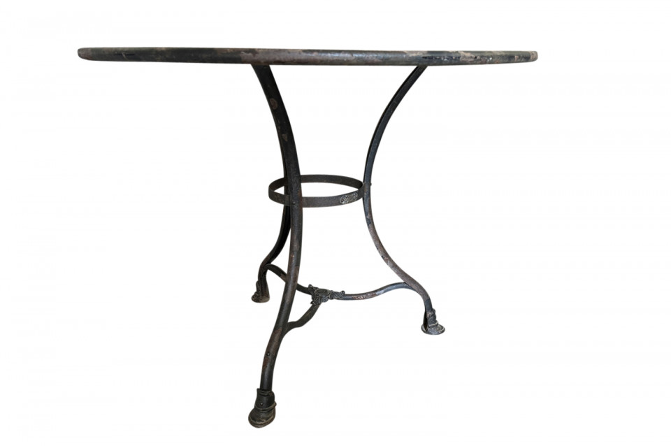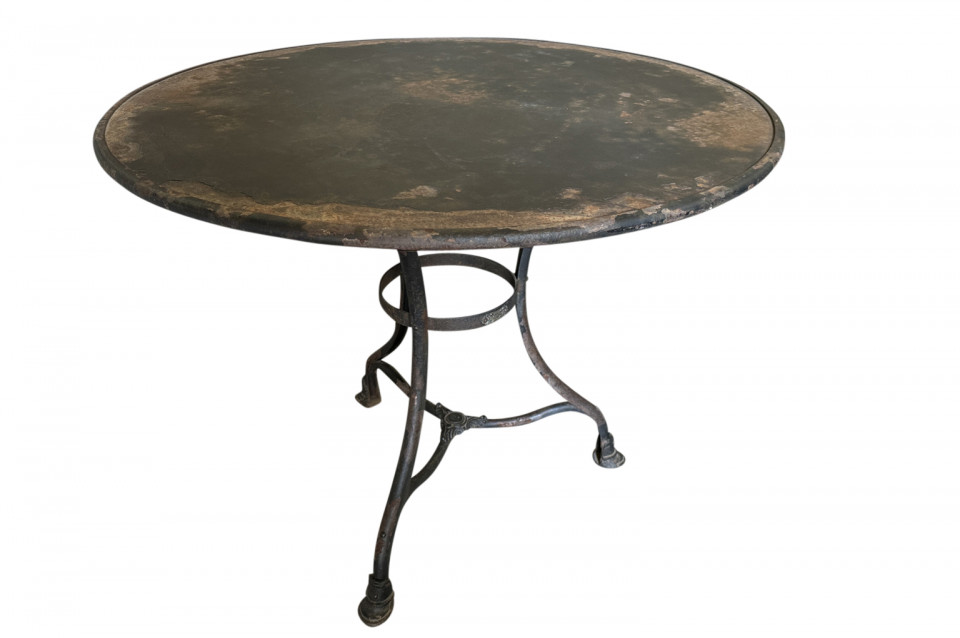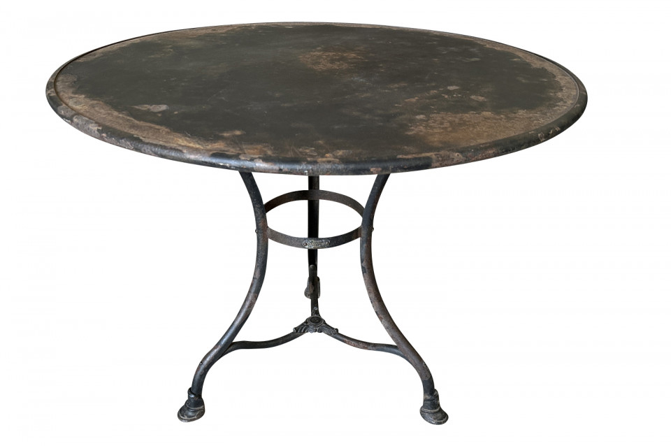 A lovely French 19th century Garden Gueridon from Arras, France. Soundly constructed from painted iron with the manufacturer's plate at the waist. Nice larger scale. Wonderful as a breakfast table or game table.
