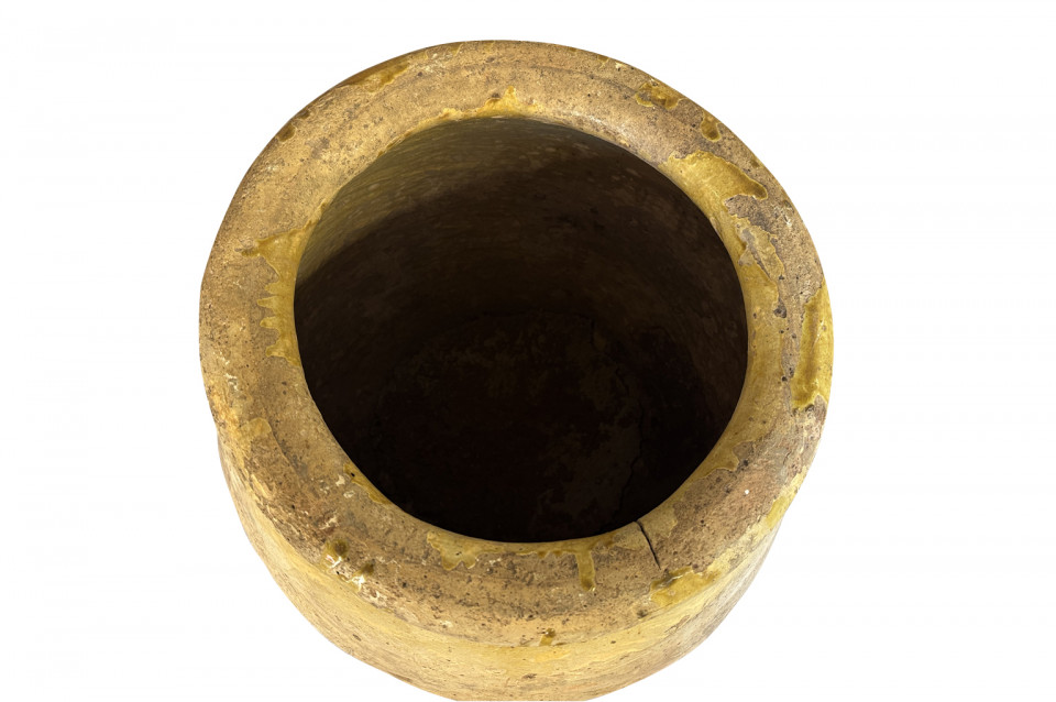 Lovely 18th century Biot jar in glazed terracotta from the South of France. Traditionally, Biot jars served to preserve olives, oils, wine and other food types. The rim of the jar and the interior are glazed in order to prevent what was being stored inside from seeping into the clay. A wonderful addition to any interior.