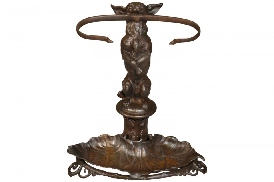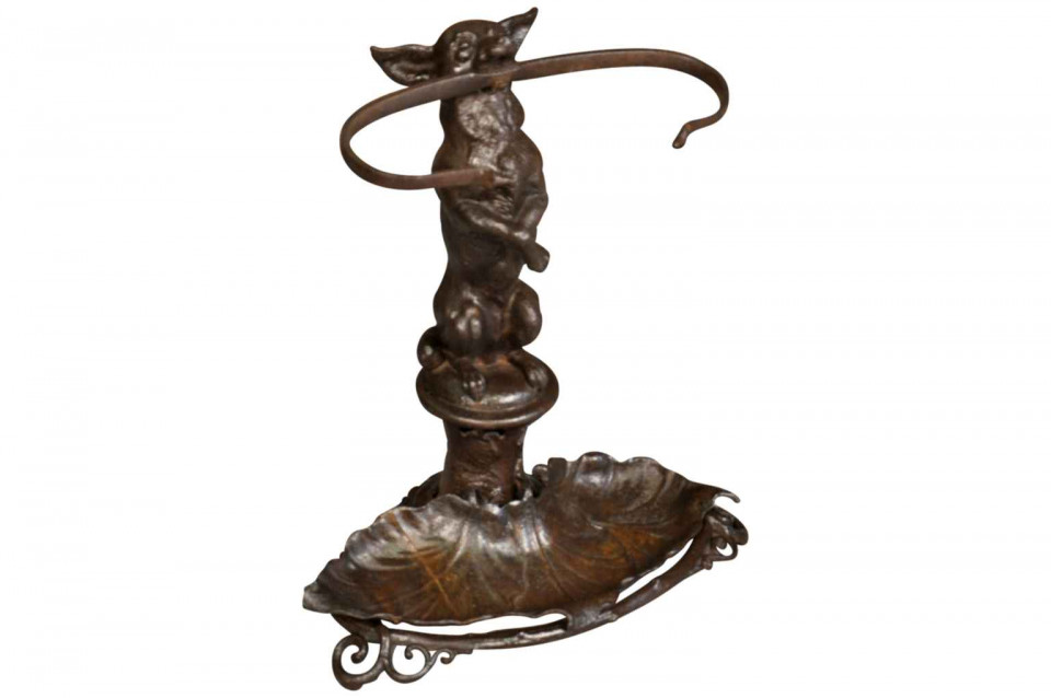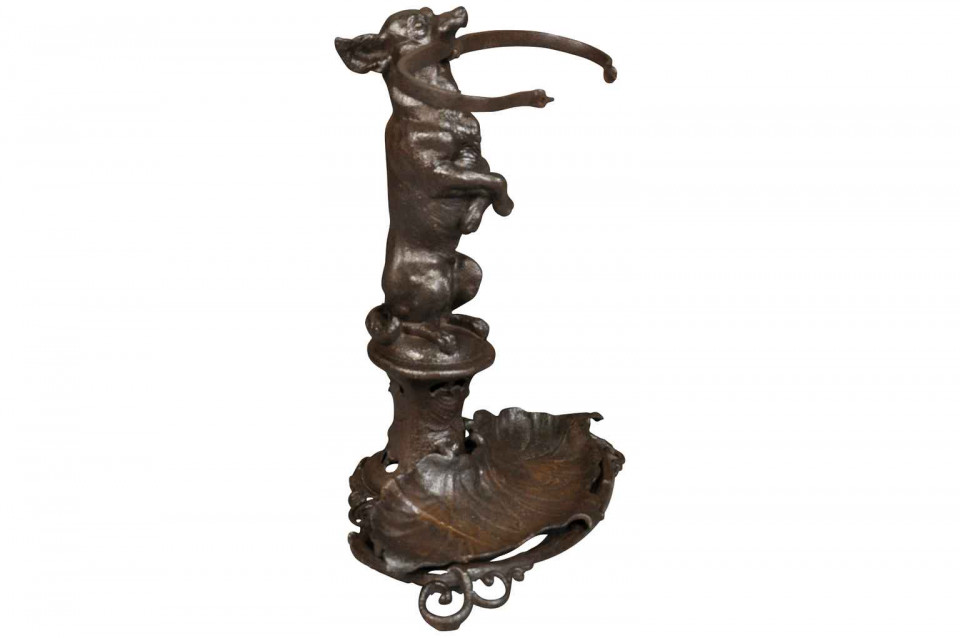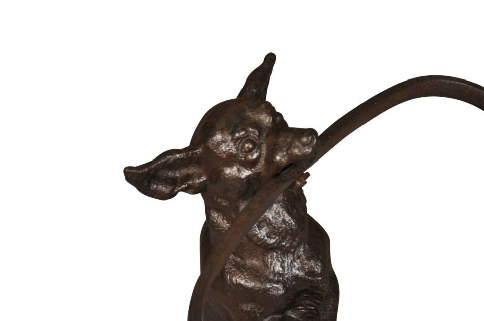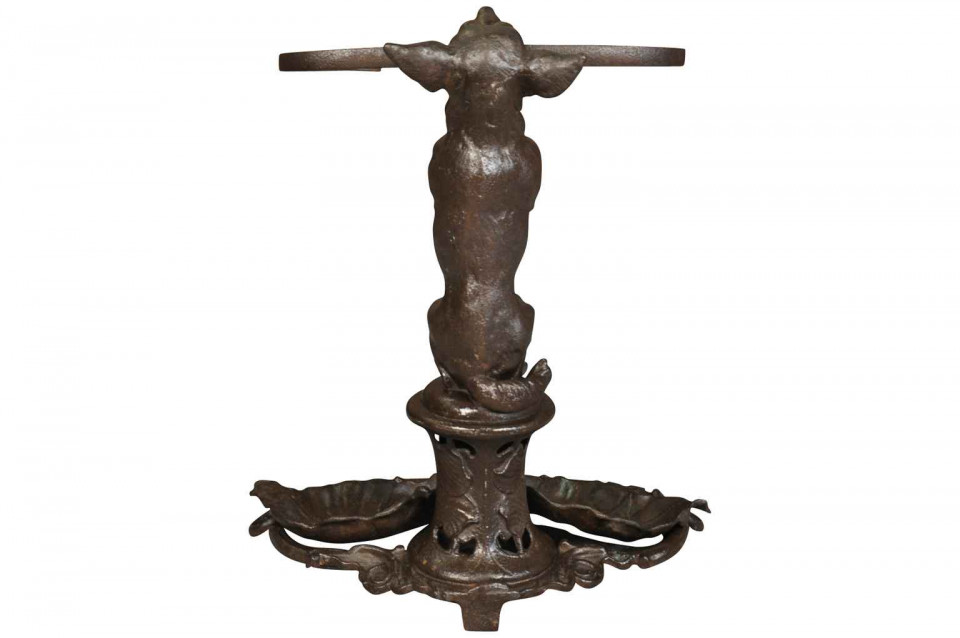 A terrific and whimsical French 19th century Fox Terrier Umbrella Stand with removable drip tray. Very fine quality and wonderfully cast.