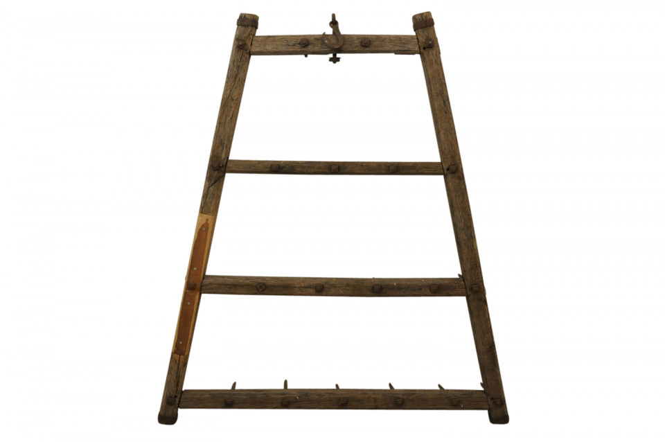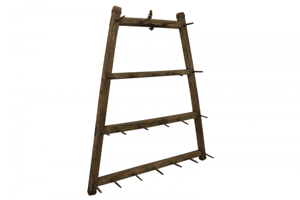 A fabulous mid-19th century Plow from the Catalan region of Spain. Sturdily constructed from wood and iron. These pieces are wonderful as wall mounted art, coat racks or converted into light fixtures.