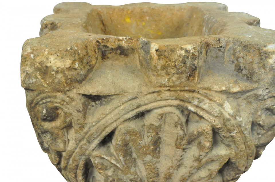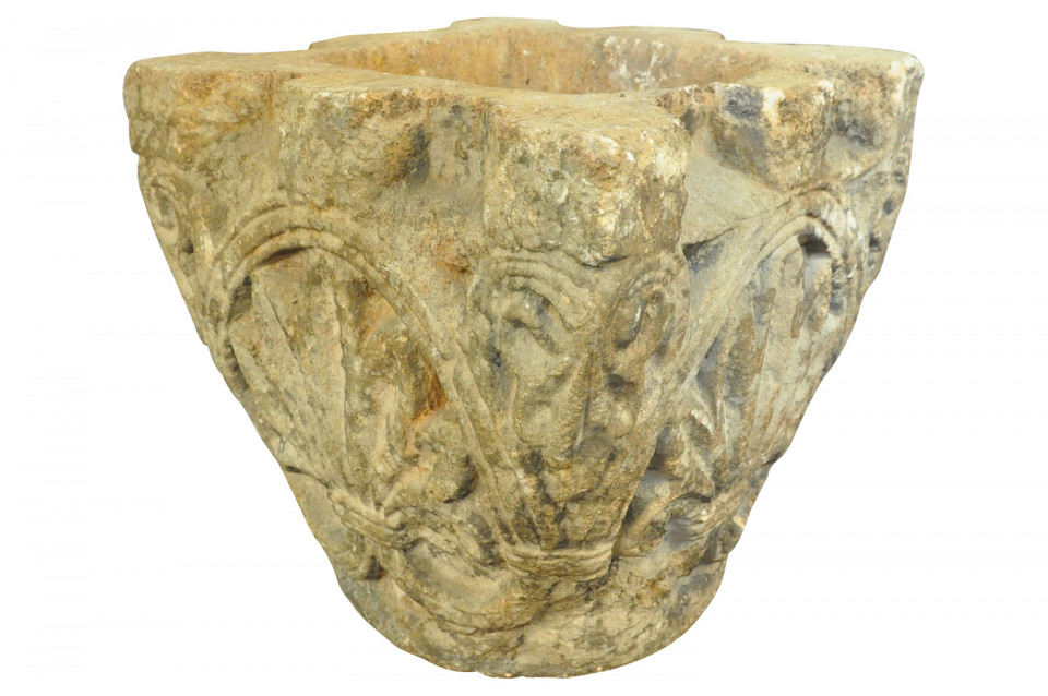 A stunning carved stone capital dating from Roman times. A magnificent architectural piece that will serve wonderfully standing alone or as a jardiniere.