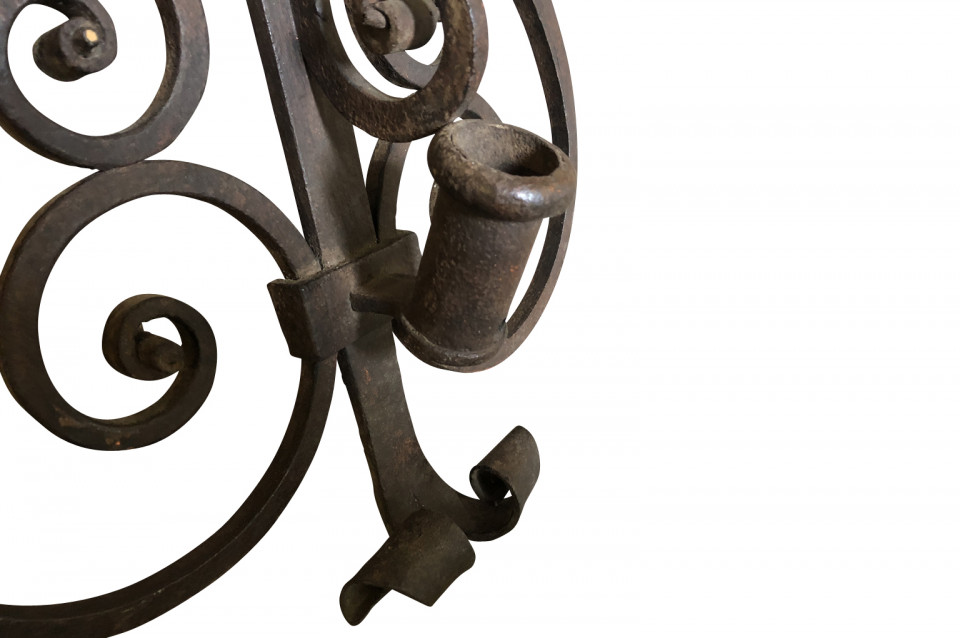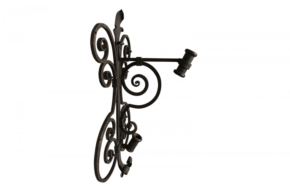 A very handsome and uncommon hand forged iron Flag Holder from Northern Italy. Exceptional craftsmanship with excellent patina.