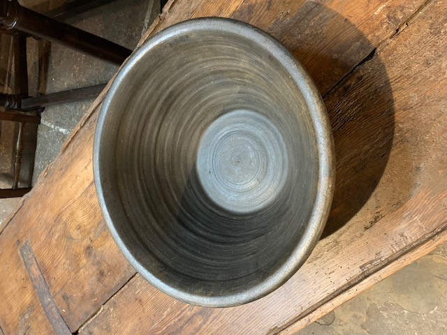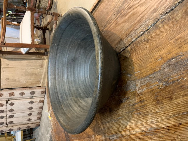 A later 19th century black terracotta bowl from the Girona region of Spain. Minimalist and elegant, this black terracotta bowl is a very chic accent piece.