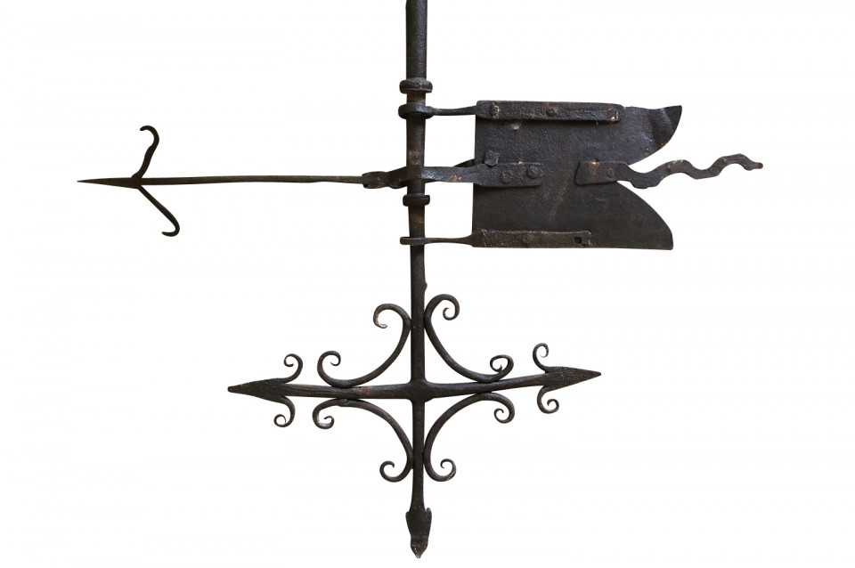 A wonderful mid-17th century Girouette - Weather Vane - beautifully crafted from iron. A wonderful motif of a flag and arrows.