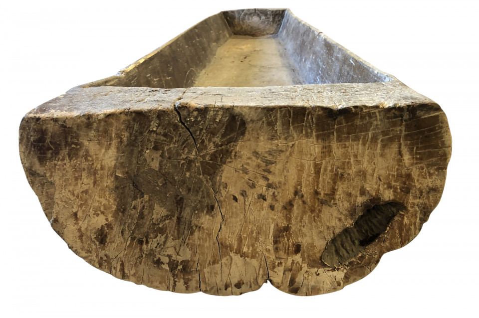 A monumental and fantastic feed trough from the Catalan region of Spain in naturally washed wood. Carved from a tree trunk. Terrific as a large planter or converted into a grand scale coffee table.