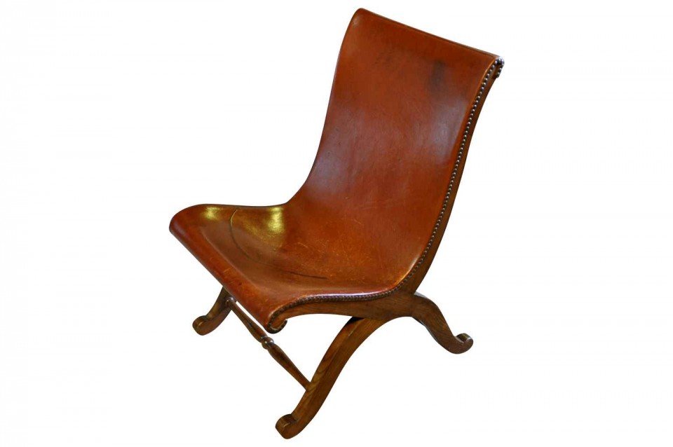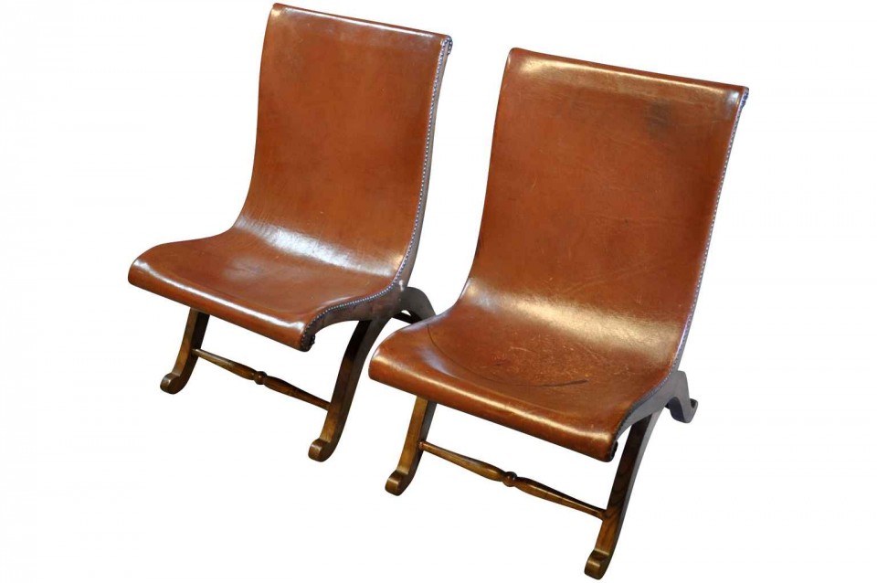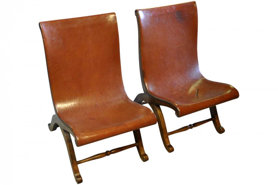 Pair Of Spanish Early 20th Century Leather Sling Chairs