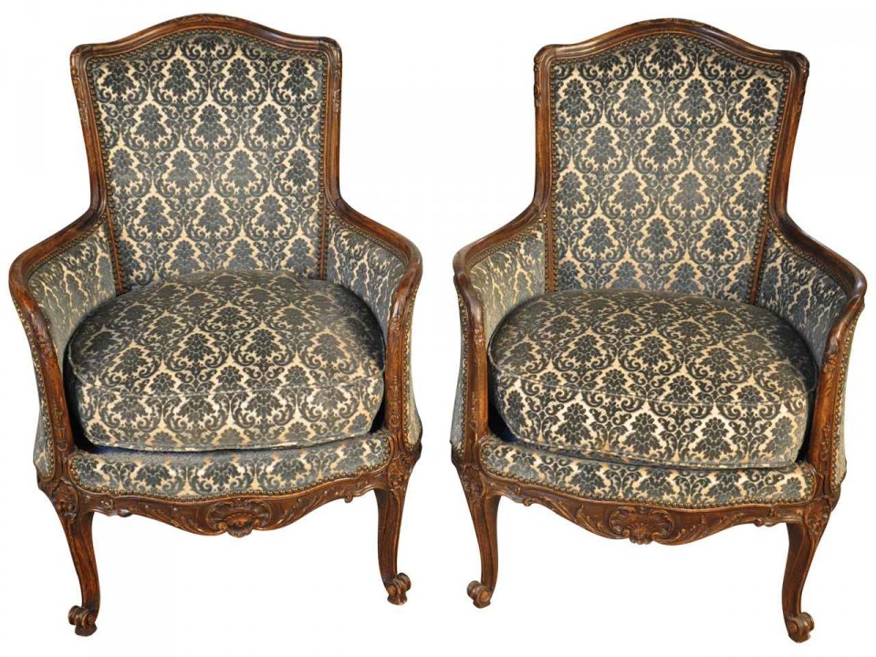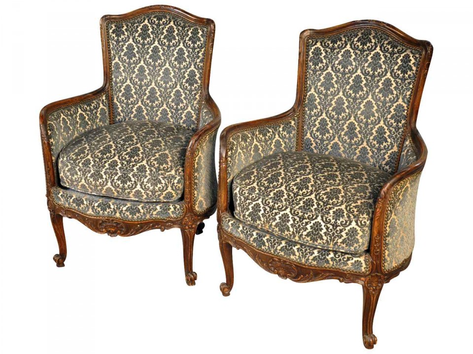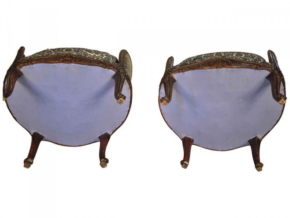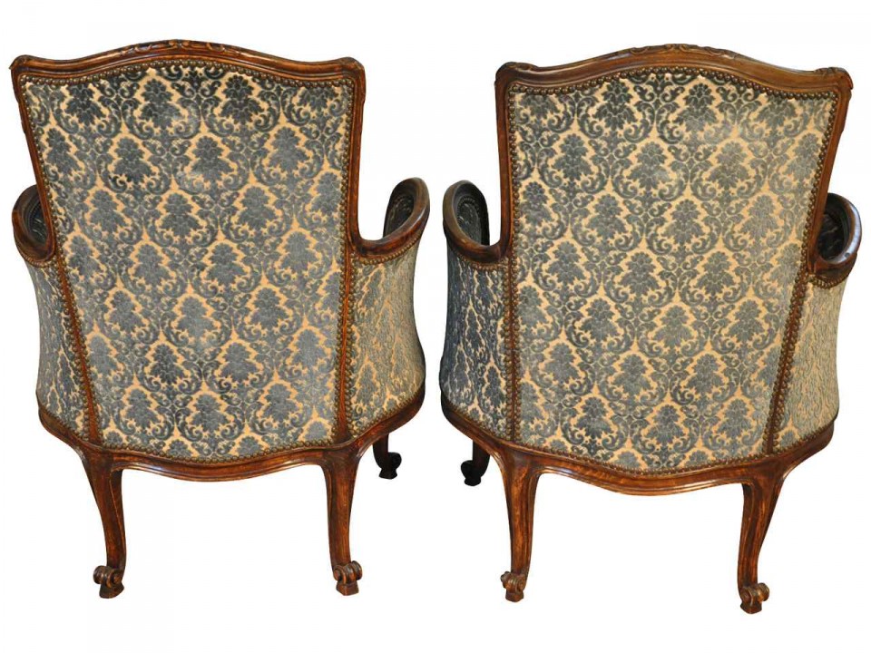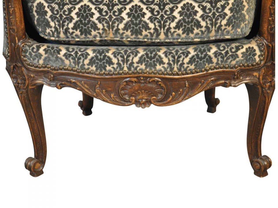 Pair of 19th century Louis 15th style "Beregere" armchairs, in oak, (Bruxelles Belgium) Circa 1880.