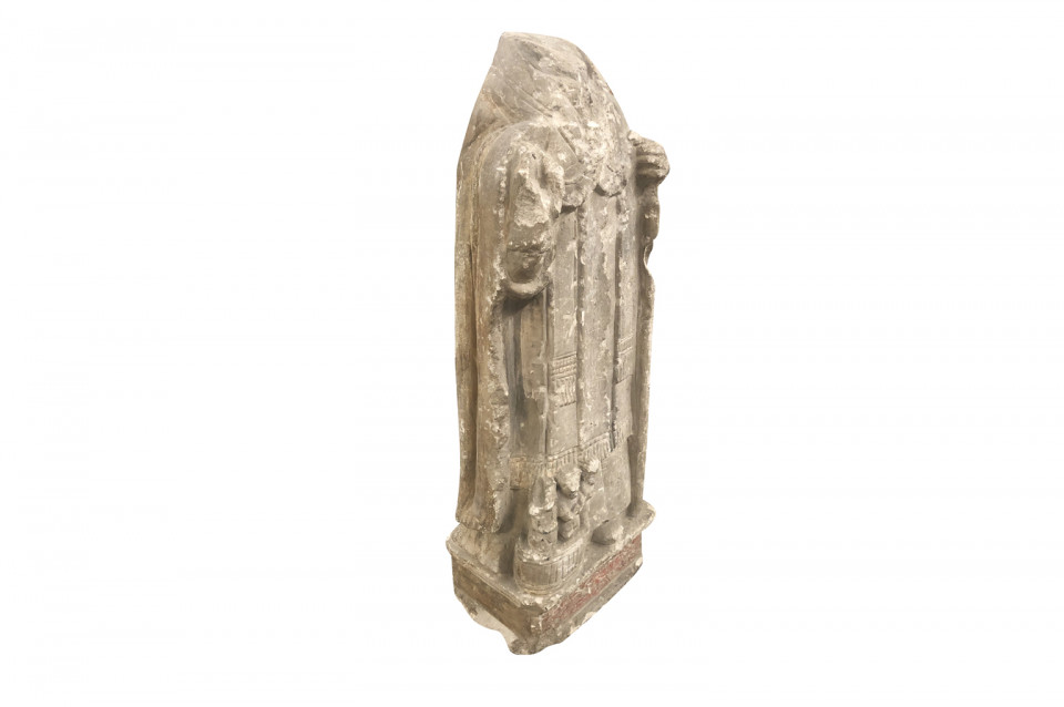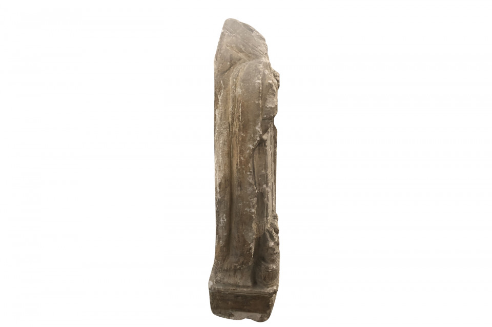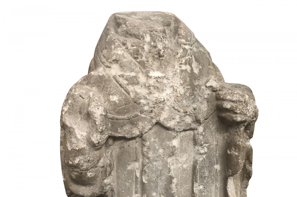 Gothic Period Carved Stone Statue Of Saint Nicholas